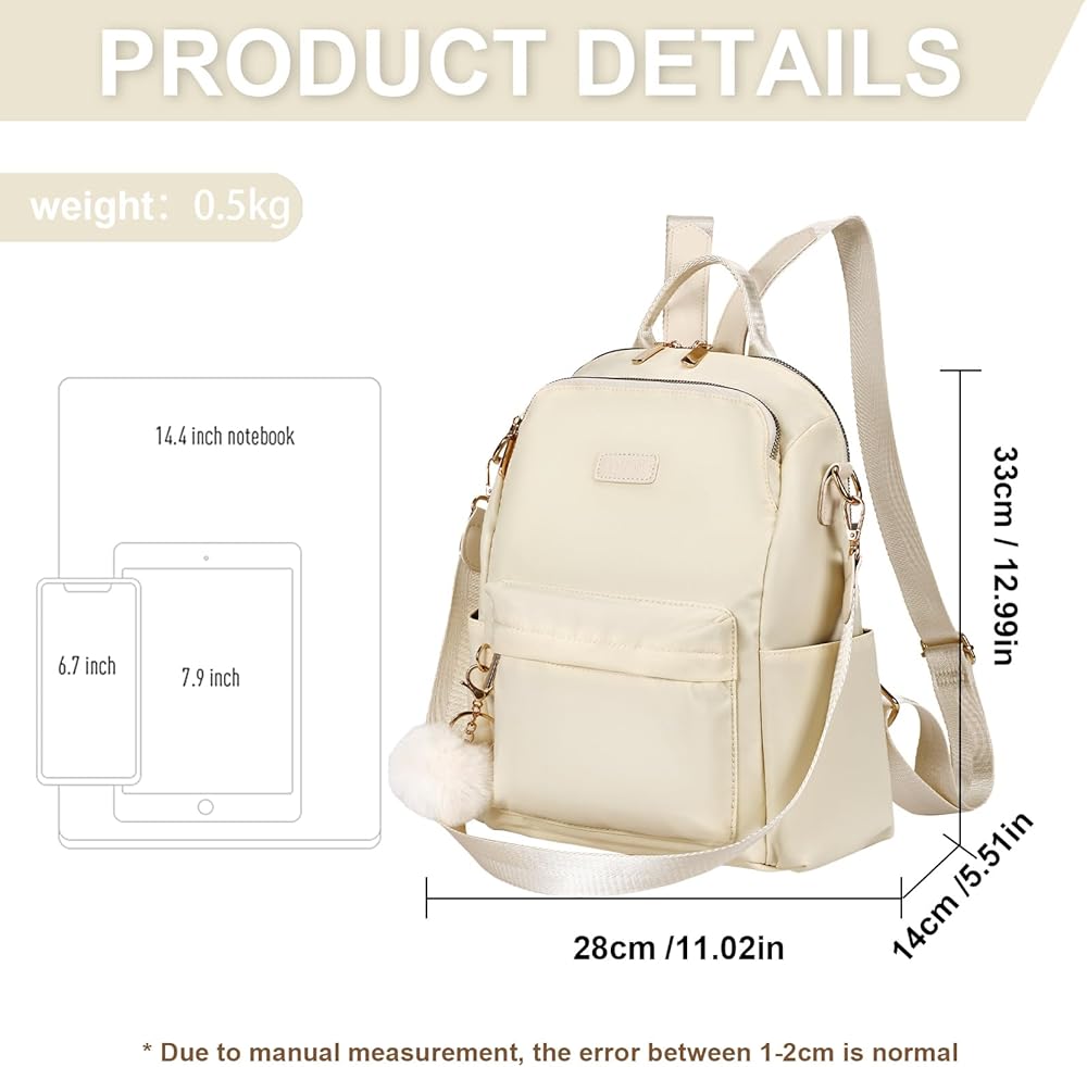 آمن وواسع: 11 × 5.9 × 11.8 بوصة، 28 × 15 × 27.5 سم؛ حقيبة الظهر النسائية هذه تناسب جهاز كمبيوتر محمول مقاس 14 بوصة؛ مع حجرة PAD لمزيد من الحماية