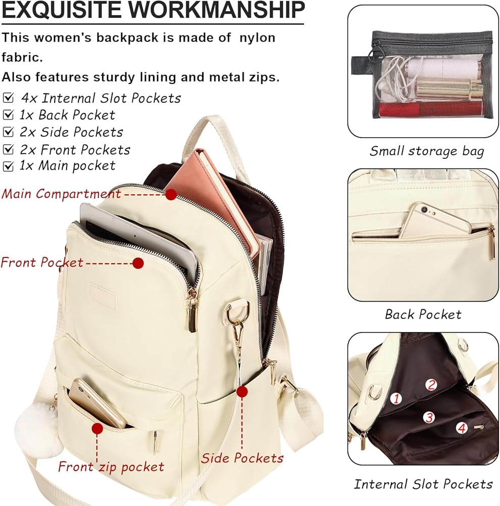 أنماط حمل متعددة: يمكنك التبديل بسهولة بين حقيبة الظهر النسائية وحقيبة الكتف النسائية مع الأشرطة القابلة للتعديل والقابلة للإزالة. رائع للعمل والنزهات غير الرسمية والسفر