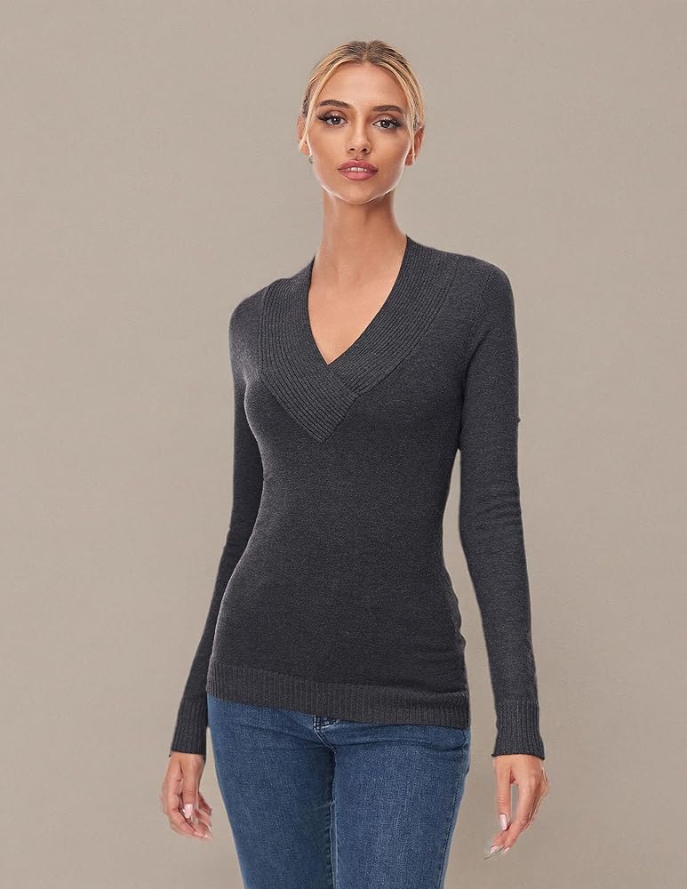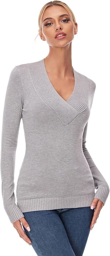 AmélieBoutik Women Crossover v Neck Long Sleeve Sweater Sweater