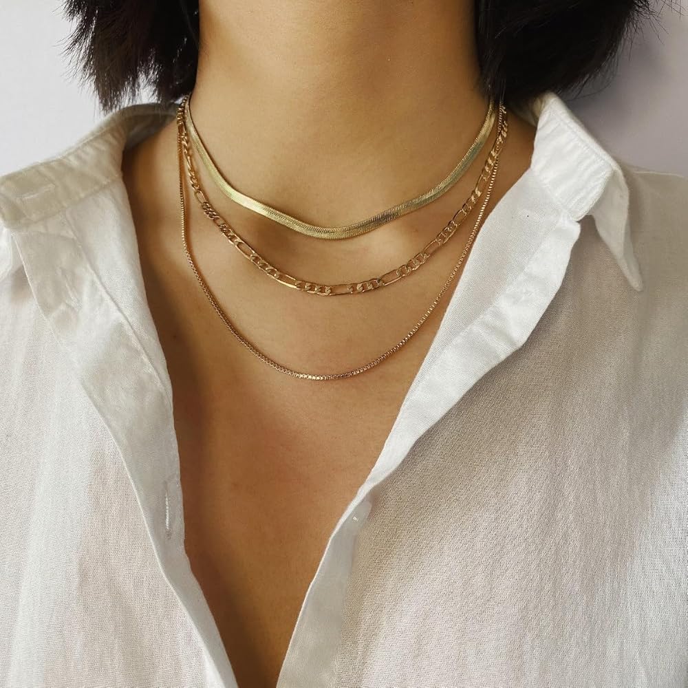 قلادات سلسلة ذهبية --- قلادة رقيقة متعددة الطبقات خفيفة الوزن وليست ضخمة، يمكنك ارتداء واحدة أو جميعها، أو يمكنك مطابقتها مع السلاسل المفضلة الأخرى لخلق مظهرك الفريد.
