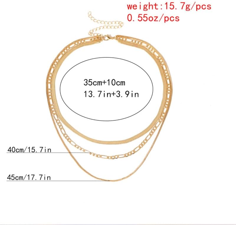 قلادة متعرجة --- سوف تحصل على 3 قلادات في طلب واحد، طول القلائد الذهبية ثلاثية الطبقات 35.56 سم/16 بوصة/17.7 بوصة (+2 بوصة سلسلة ممتدة). كقلادة ذات طبقات، بسيطة وأنيقة، يمكن أن تتطابق القلادة ذات الطبقات الذهبية تفضيلاتك بحرية، يمكنك ارتداؤها معًا أو بشكل منفصل.