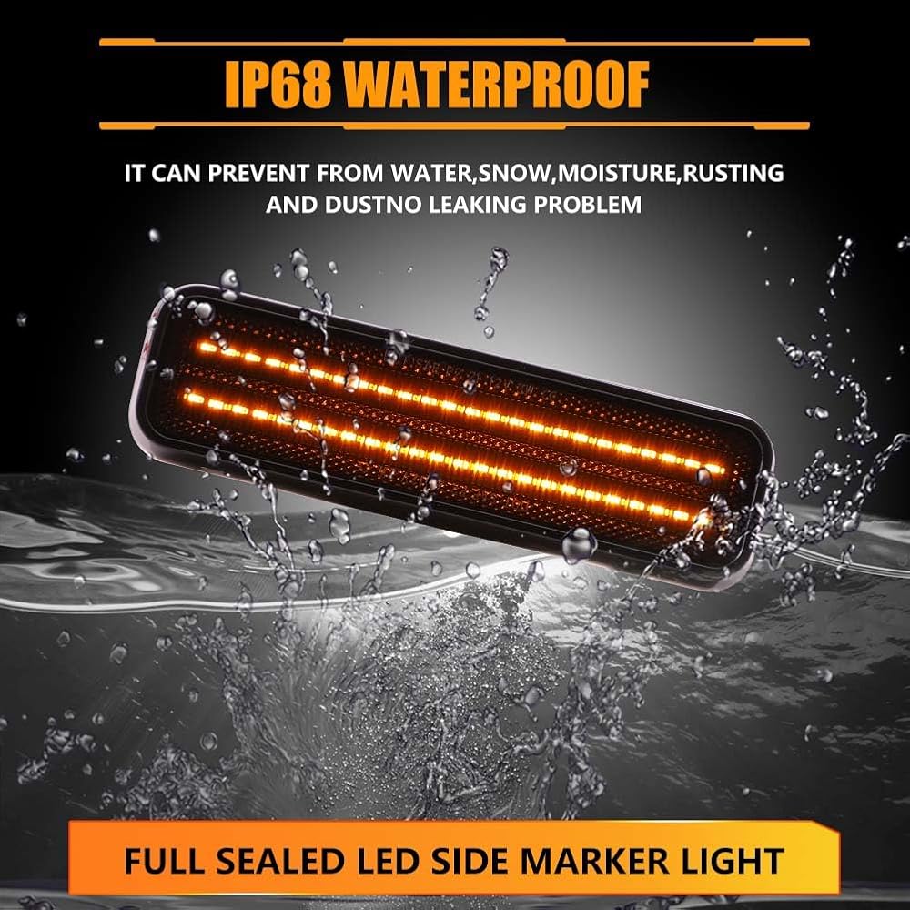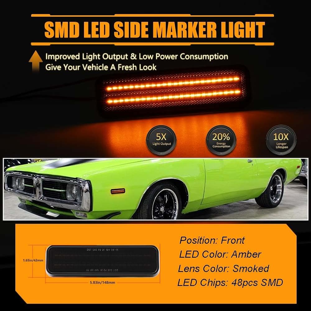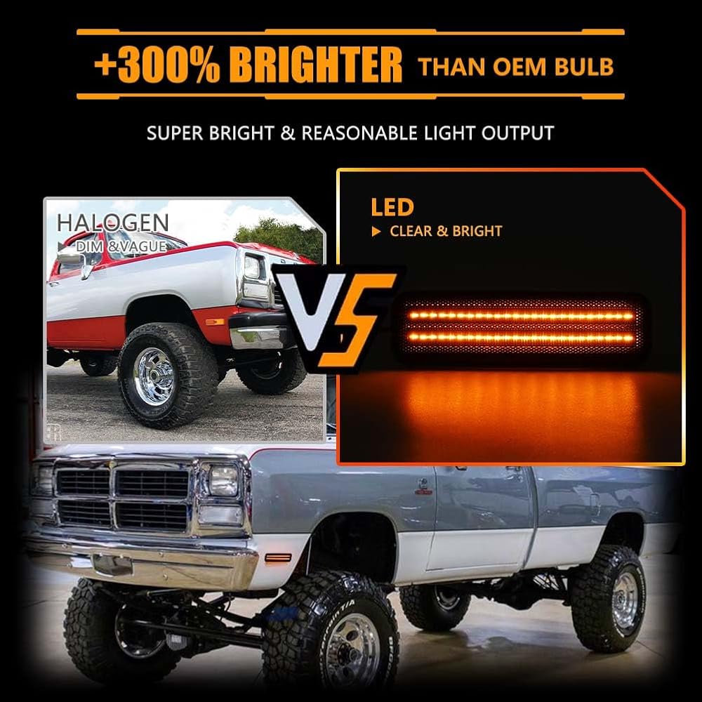 سطوع استثنائي وجماليات حديثة: استمتع برؤية لا مثيل لها مع مصابيح SMD LED عالية الأداء من OFFKAT. تحتوي كل مجموعة من مصابيح التحديد الجانبية على 60 قطعة من رقائق SMD LED عالية الجودة، مما يوفر سطوعًا يصل إلى 5 أضعاف المصابيح التقليدية، وعمر افتراضي يزيد عن 55000 ساعة. إنها تعزز السلامة وتضفي لمسة جريئة ومعاصرة على سيارة دودج الخاصة بك. توفر عدسة الكمبيوتر الشخصي عالية النقل للضوء مظهرًا متطورًا مع تحسين إخراج الضوء.