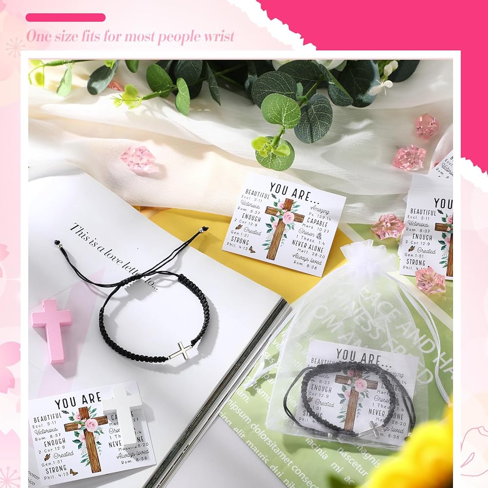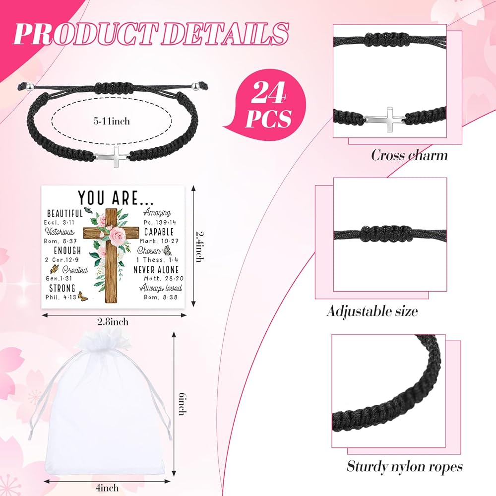 Complete Package: the package includes 24 cross Christian bracelets bulk, 24 matching cards and 24 organza bags; If you're planning a prayer meeting, youth group event, or simply want to share your faith with friends and family, these sets are ideally suited to your needs