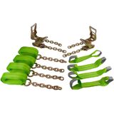 4 Pcs - 2" x 14' High Abrasion Straps w/ 3/8" x 12" Chain Extensions