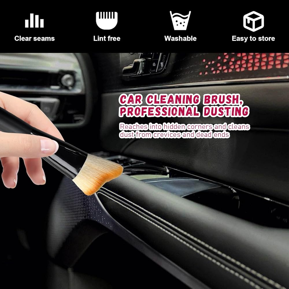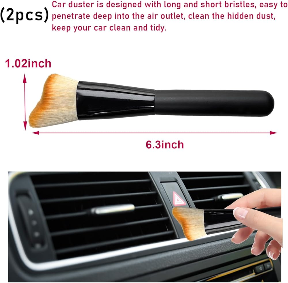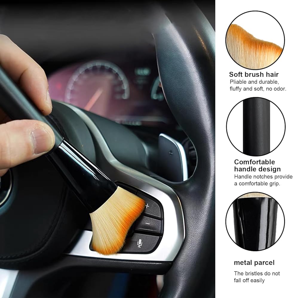 【Wide Application】: This car interior cleaning brush can be widely compatible with various vehicles like cars, SUVs, trucks, etc. You are able to use it to clean air vents, center consoles, dashboards, and leather seats, and more. It also can serve as a makeup brush and dipping brush in daily time.