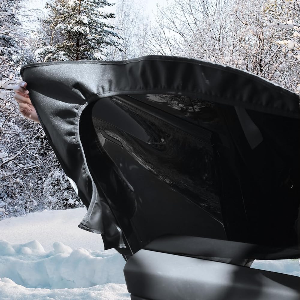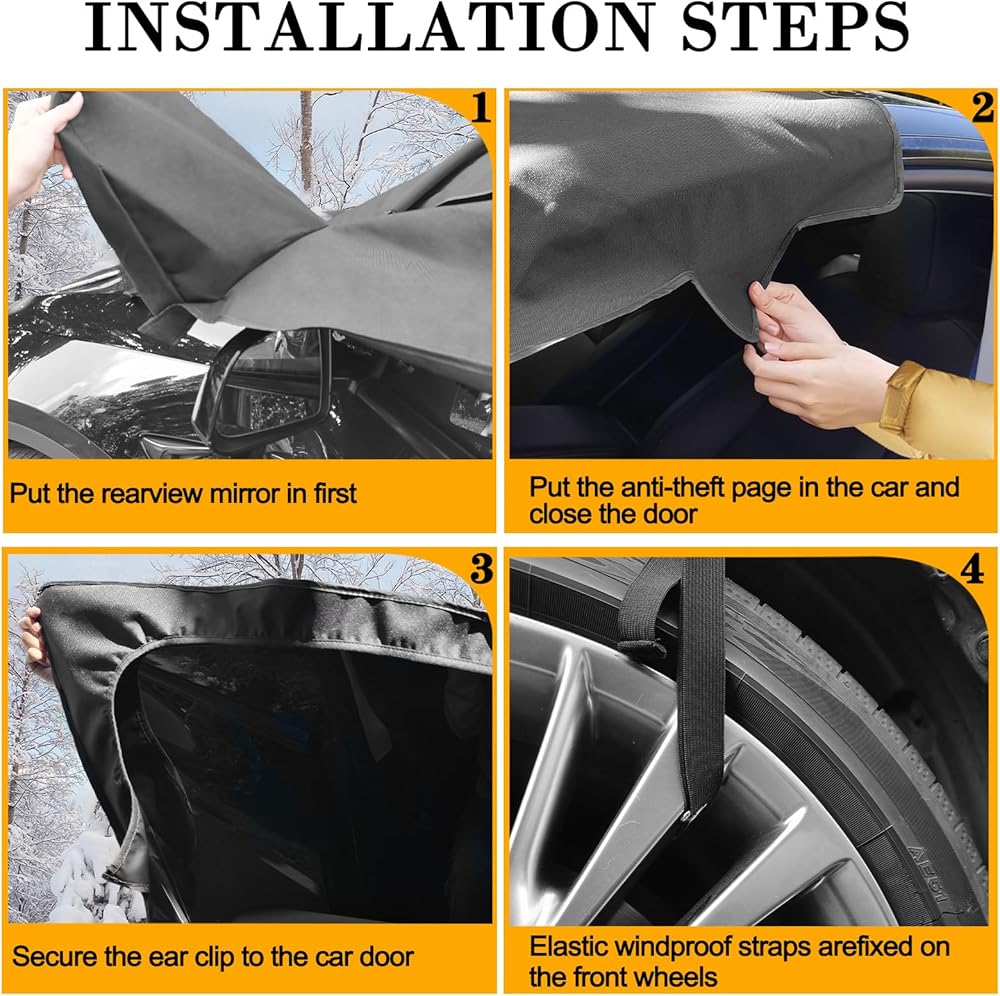 【تركيب سريع】لا توجد حاجة لأي أدوات، فقط استخدم الباب الأمامي ومرآة الرؤية الخلفية. النوافذ الجانبية مغطاة بالكامل لمنع السرقة والتفجير. لا مزيد من الوقوف بالخارج للكشط أو إزالة الجليد، فهو مثالي لبداية الصباح الباكر.