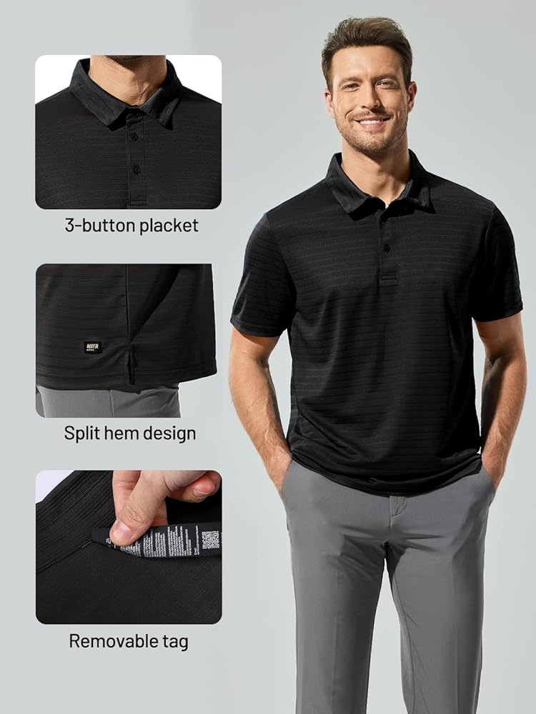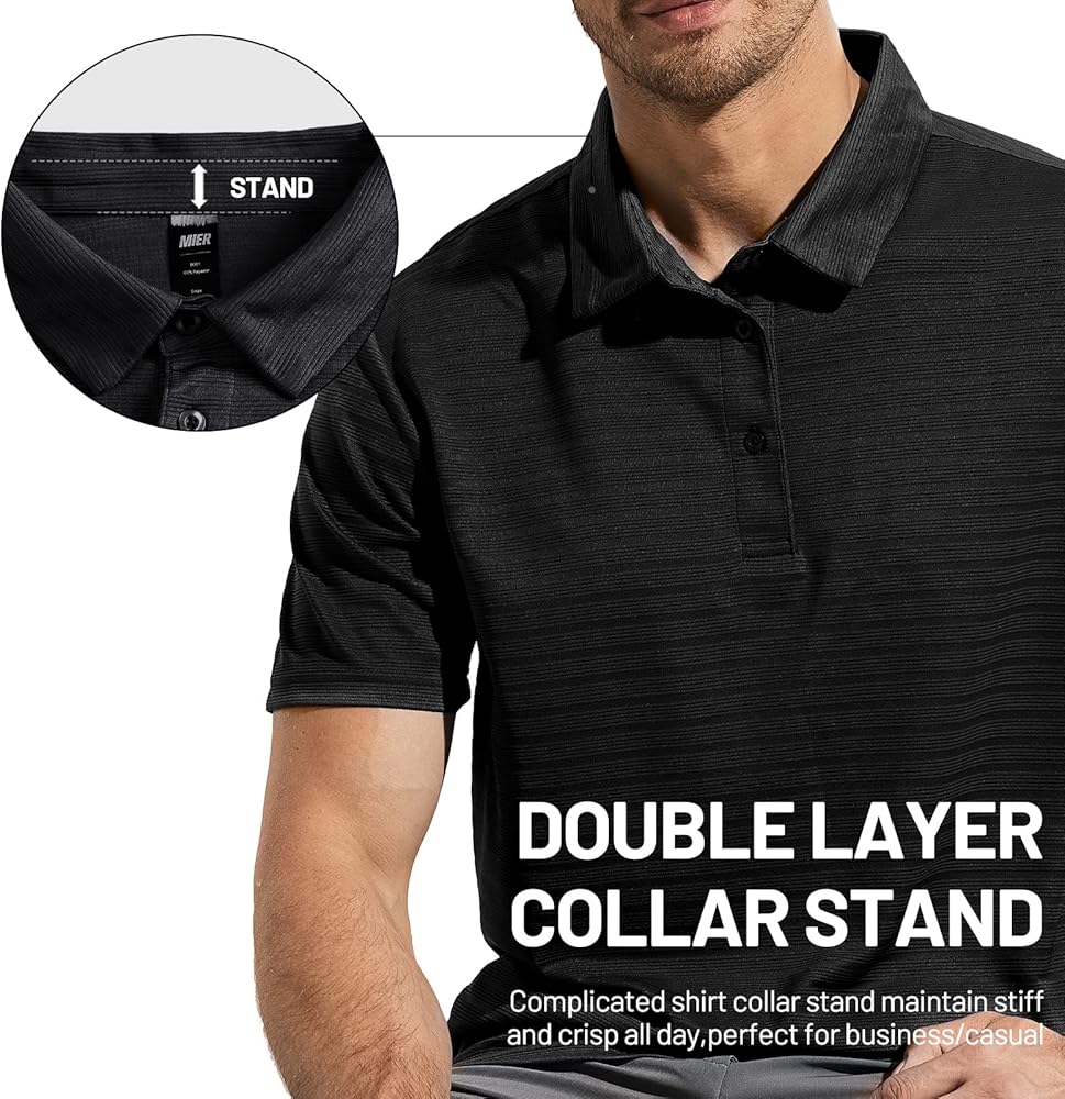 قمصان بولو للجولف من البوليستر من MIER للرجال مع علامات تمزيقها بسهولة لضمان أقصى قدر من الراحة. إنه مثالي للارتداء اليومي الكاجوال أو العمل أو الجولف أو التنس أو العمل أو التنزه سيرًا على الأقدام أو أي أنشطة أخرى.