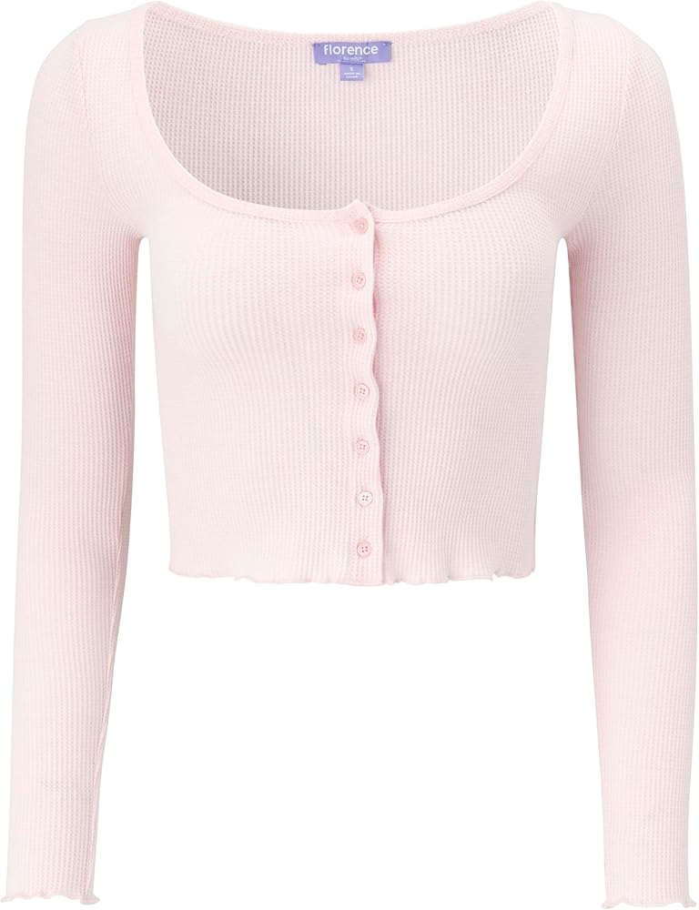 - Soft sleep microthermal button front long sleeve sweater cardigan in Ballerina Pink.