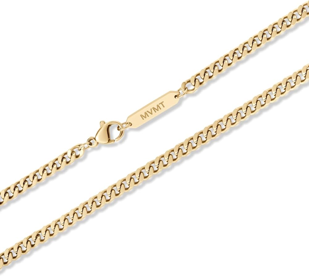 مجوهرات MVMT للرجال - إكسسوار أزياء - قلادة سلسلة من الفولاذ المطلي بالأيونات 3 مم - مطلية بالذهب