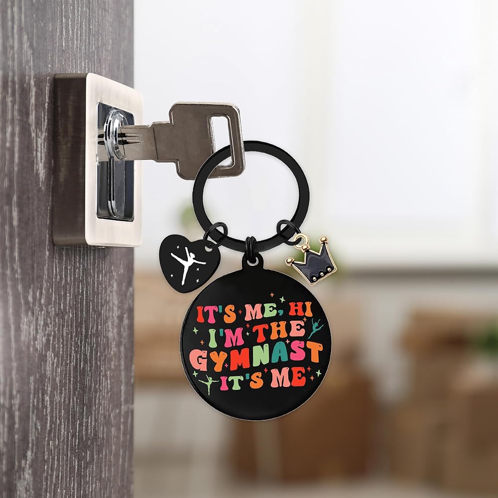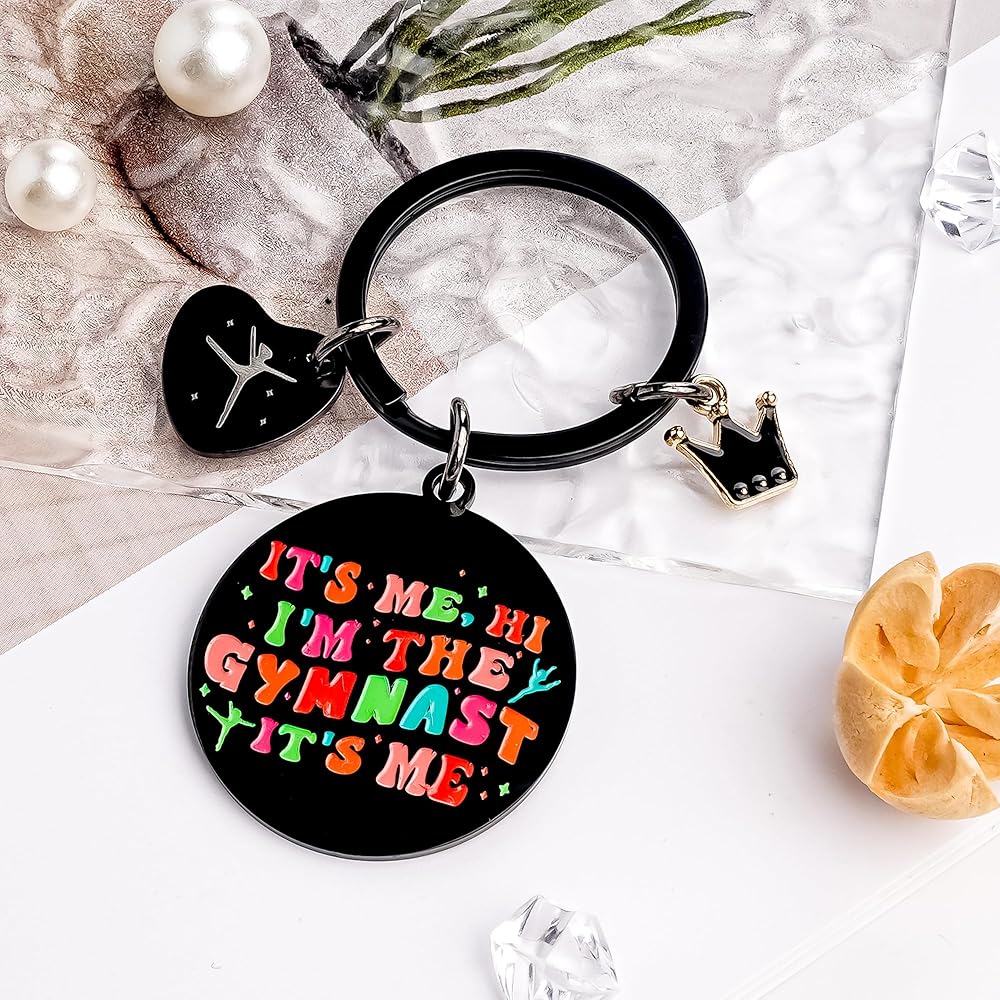 هدية الجمباز اللطيفة: سلسلة مفاتيح الجمباز هذه منقوشة بعبارة مرحة، "It's Me، Hi I'm The Gymnast"، مما يجعلها هدية ساحرة للاعبي الجمباز. إنه يحتفل بشغفهم وعملهم الجاد بطريقة ممتعة لا تُنسى