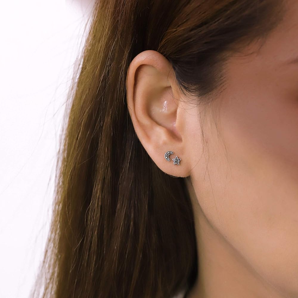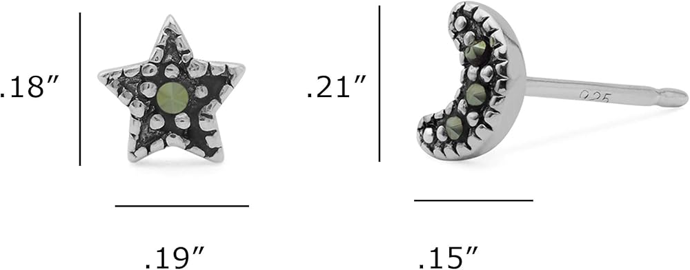 Boma Jewelry فضة Marcasite القمر والنجمة أقراط غير متطابقة
