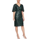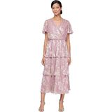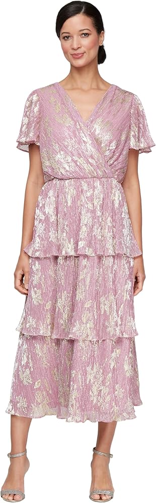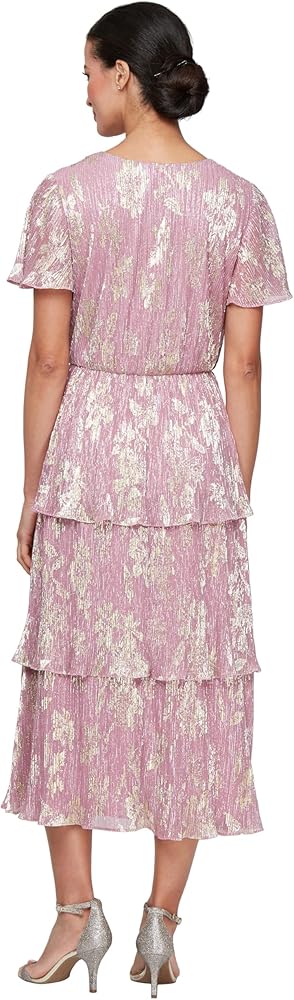 Elevate your wardrobe with the S.L. Fashions Women's Short Sleeve Midi V-Neck Tiered Cocktail Dress. This stunning piece combines elegance and versatility, making it perfect for weddings, formal events, and evening occasions. Crafted from soft, shimmering pleated fabric, the dress exudes timeless charm while offering modern comfort. The flattering V-neckline and short sleeves provide a sophisticated touch, while the ruched waist detail accentuates your figure beautifully. The A-line silhouette ensures a graceful drape that complements various body types. With a convenient back zipper closure, this dress is easy to slip on and off. Whether you're attending a wedding as a guest or heading to a formal dinner, this cocktail dress will have you radiating confidence and style all night long.