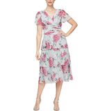 Elegant Design: Crafted from soft shimmer printed pleated fabric, it exudes timeless elegance. The flattering surplice neckline and waist-defining ruching create a sophisticated look suitable for any occasion.