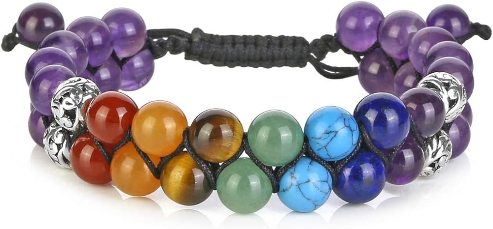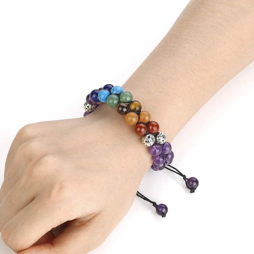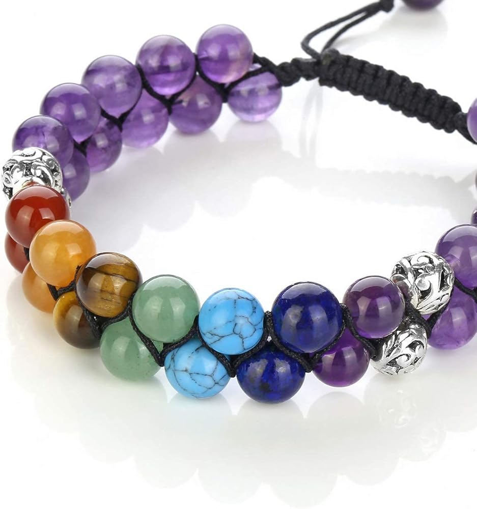 APPLICATION: Double layer chakra beads and amethyst crystal beads, designed for stress relief, meditate, yoga, essential oil diffuses. The prime quality beads bracelet is for the closest person. This small and chic gifts are sure not to disappoint them.