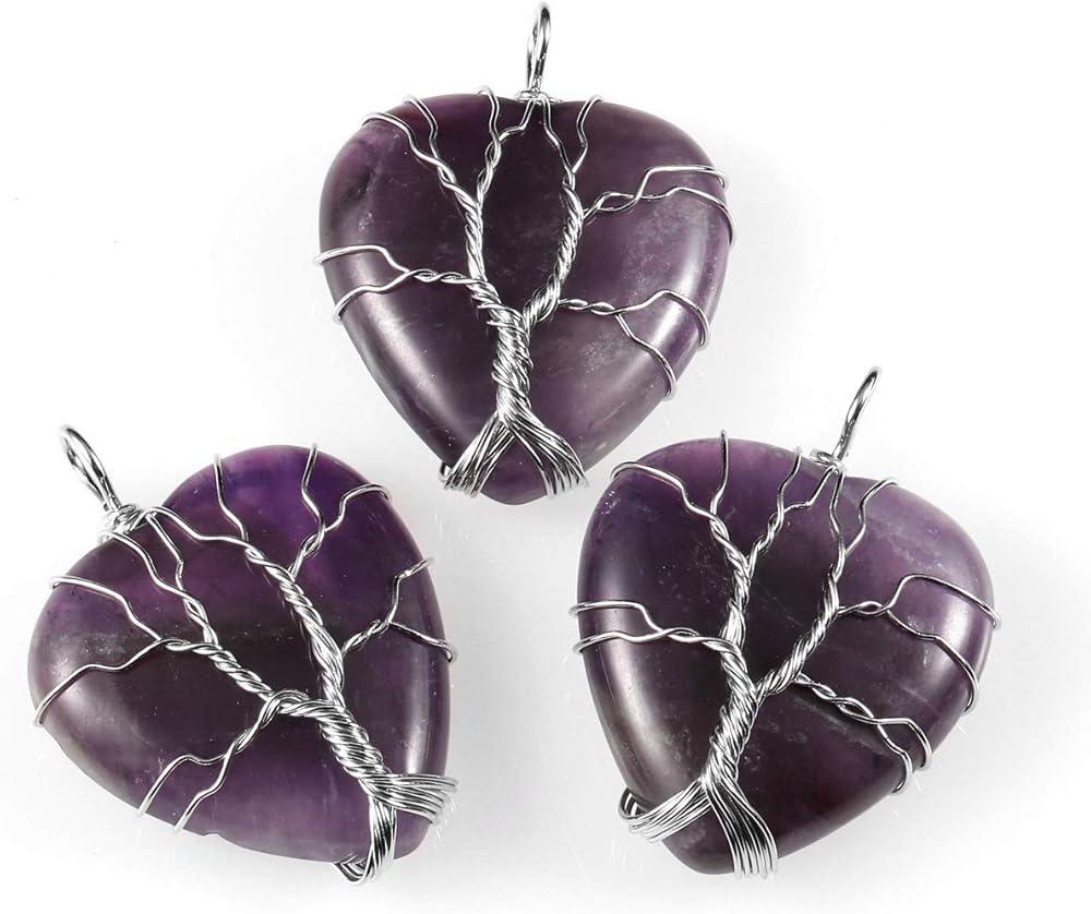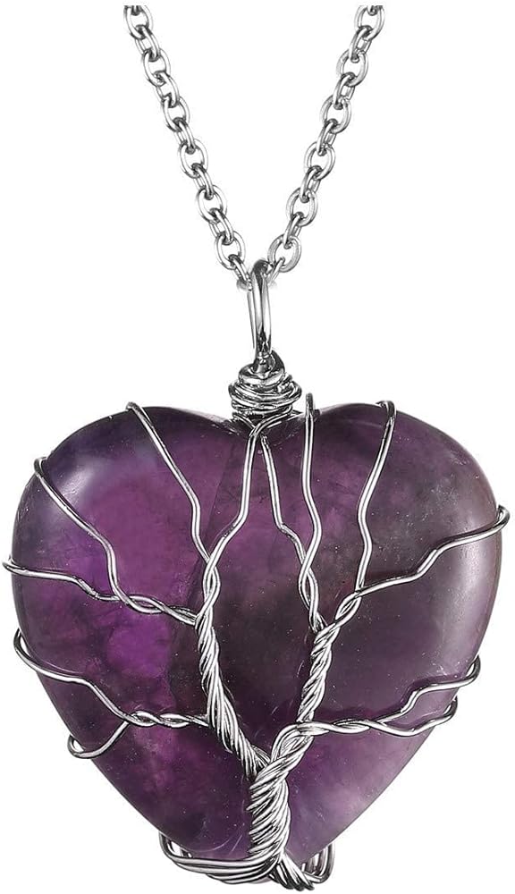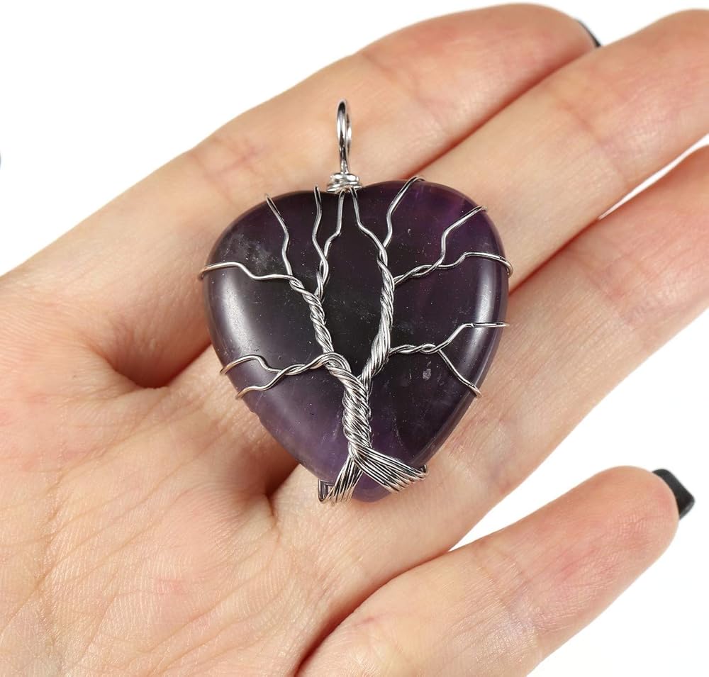 Natural Amethyst Healing Crystals Silver Life Tree Necklace