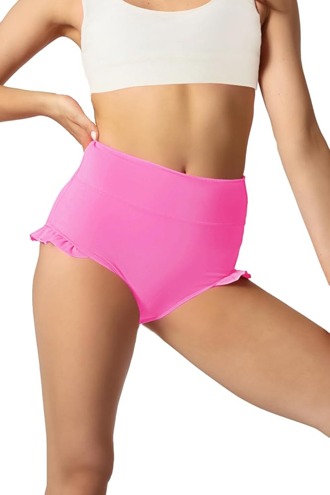 المزايا: شورت رقص للفتيات، حاشية مكشكشة، خصلة عالية، حزام خصر عريض يحيط بمنحنيات الجسم ويبسط الشكل يساعد على تعزيز ضغط ودعم شورت اليوغا