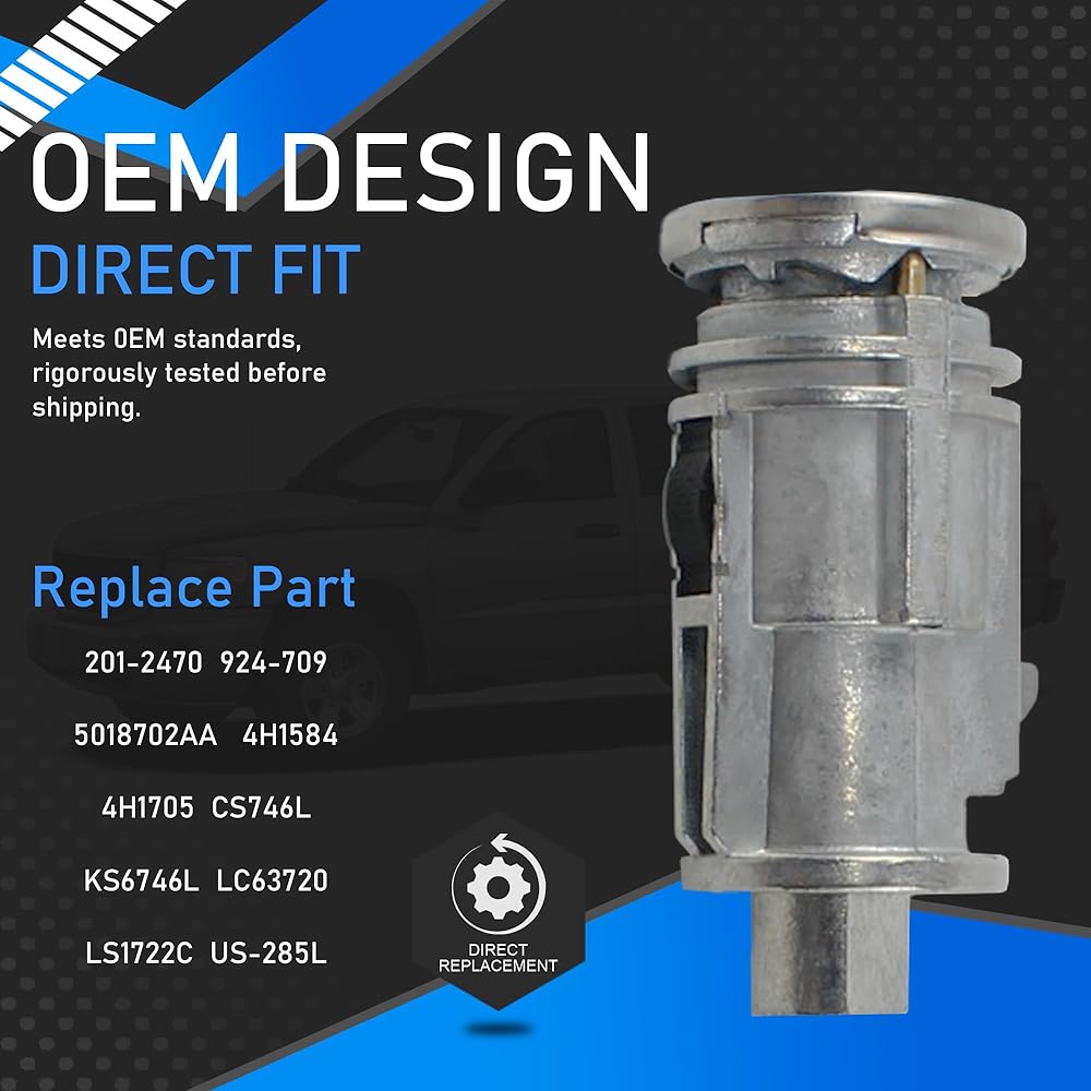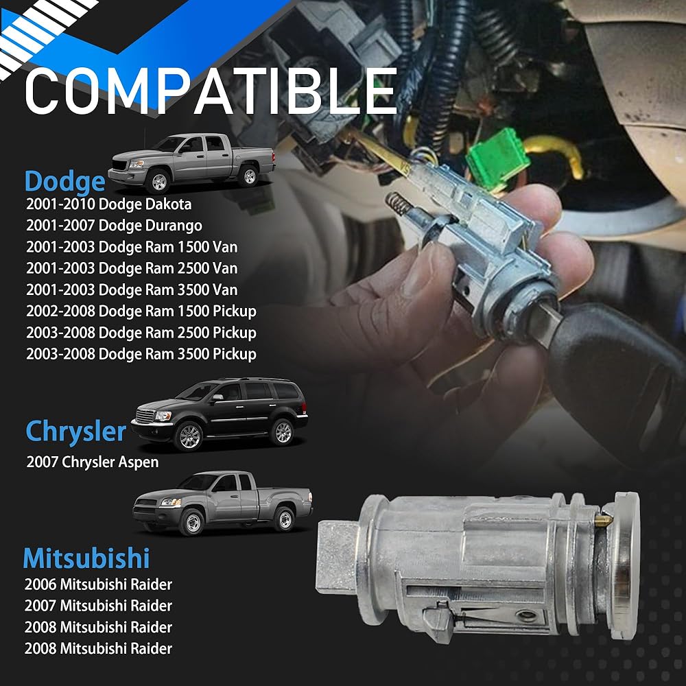 أسطوانة قفل مفتاح الإشعال مع مفتاحين متوافقة مع 2001-2010 دودج رام 1500/2500/3500، دورانجو، داكوتا، كرايسلر أسبن، ميتسوبيشي رايدر يستبدل 924-709 5018702AA