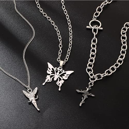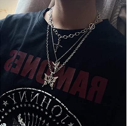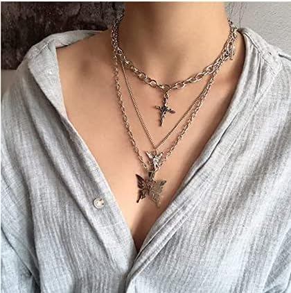 nobrand لذيذ الشرير طبقات مكتنزة سلسلة المختنق تبديل قلادة بوهو مجموعة المجوهرات الطبقات فراشة الصليب الملاك قلادة بيان قلادة مهرجان بيان قلادة للنساء رجل