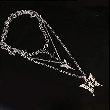 - Women multilayered chain butterfly choker necklace (set of 3)