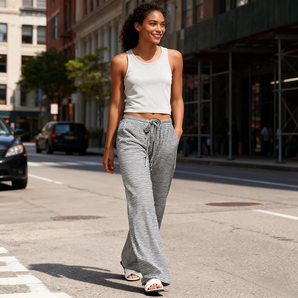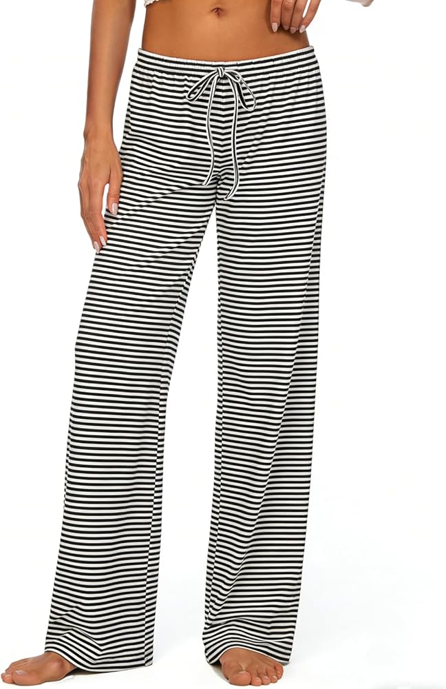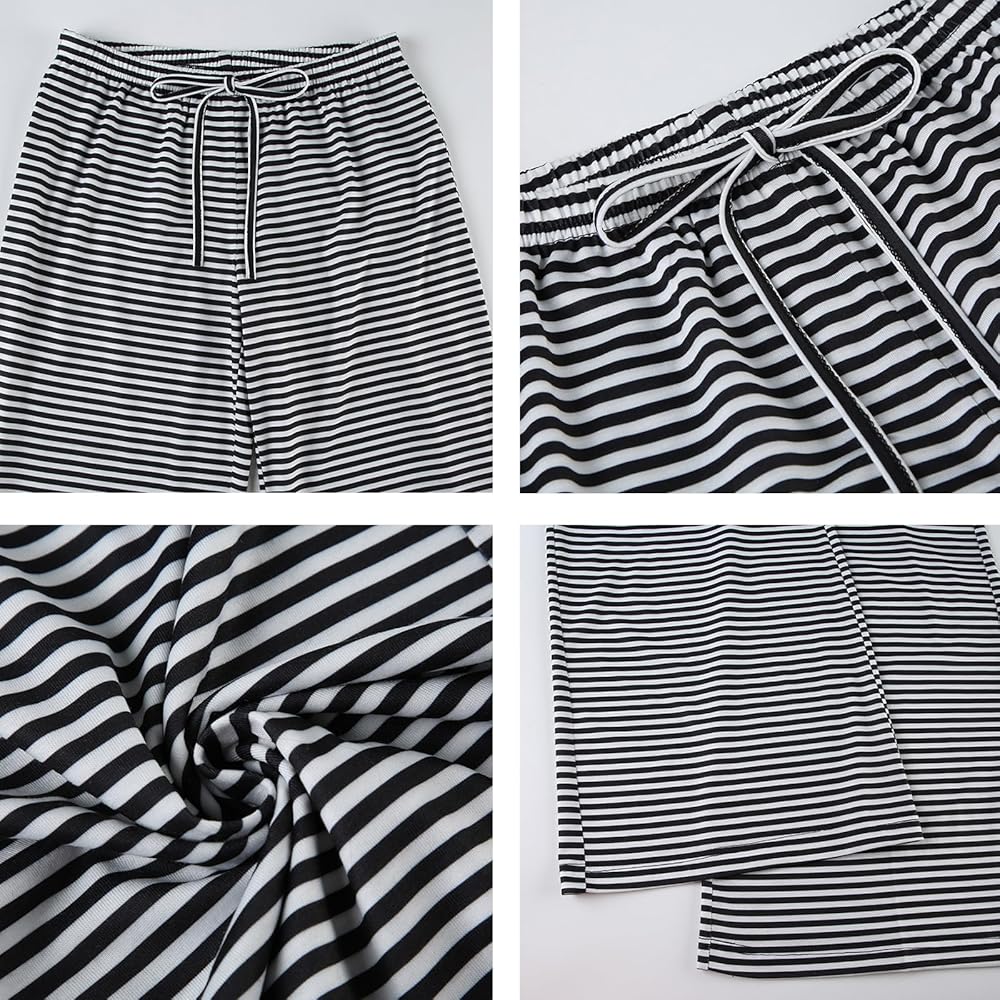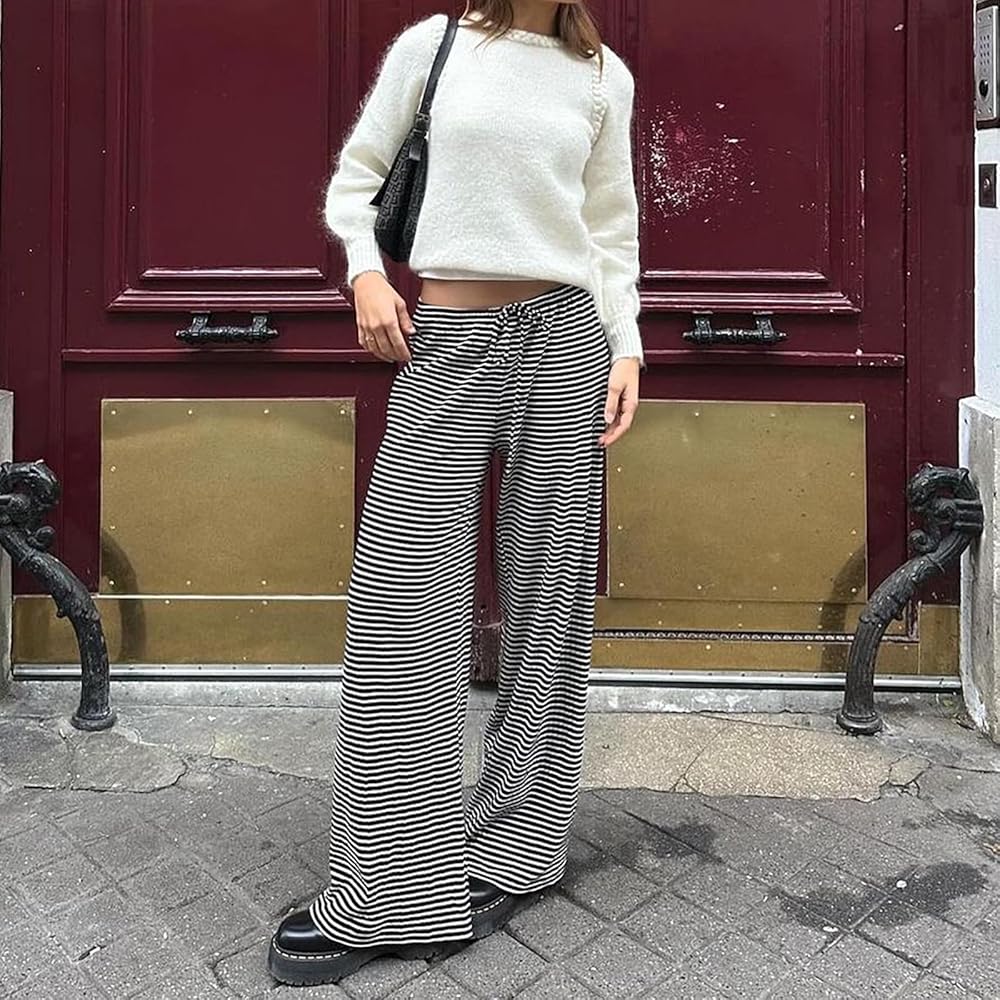 هذا البنطال المخطط ذو الجزء السفلي المريح للنوم هو ملابس مذهلة للنساء في الفصول الأربعة. يرجى الرجوع إلى جدول المقاسات الخاص بنا قبل الطلب.