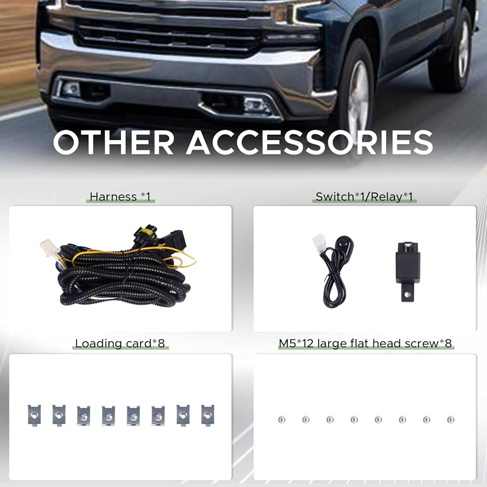 مصابيح ضباب LED مع مفتاح ومجموعة أسلاك متوافقة مع مصابيح ضباب القيادة Silverado 1500 2500HD 3500HD 2019 2020 2021 (جانب السائق والراكب)