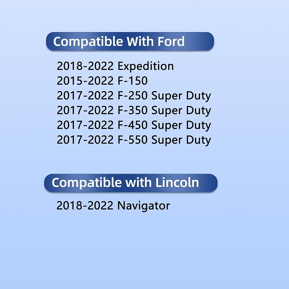 • 【Compatible With Ford F150 F250 F350 F450 F550】Compatible With Ford 2018-2022 Expedition | 2015-2022 F-150 | 2017-2022 F-250 Super Duty | 2017-2022 F-350 Super Duty | 2017-2022 F-450 Super Duty | 2017-2022 F-550 Super Duty | (year 2015 2016 2017 2018 2019 2020 2021 2022)