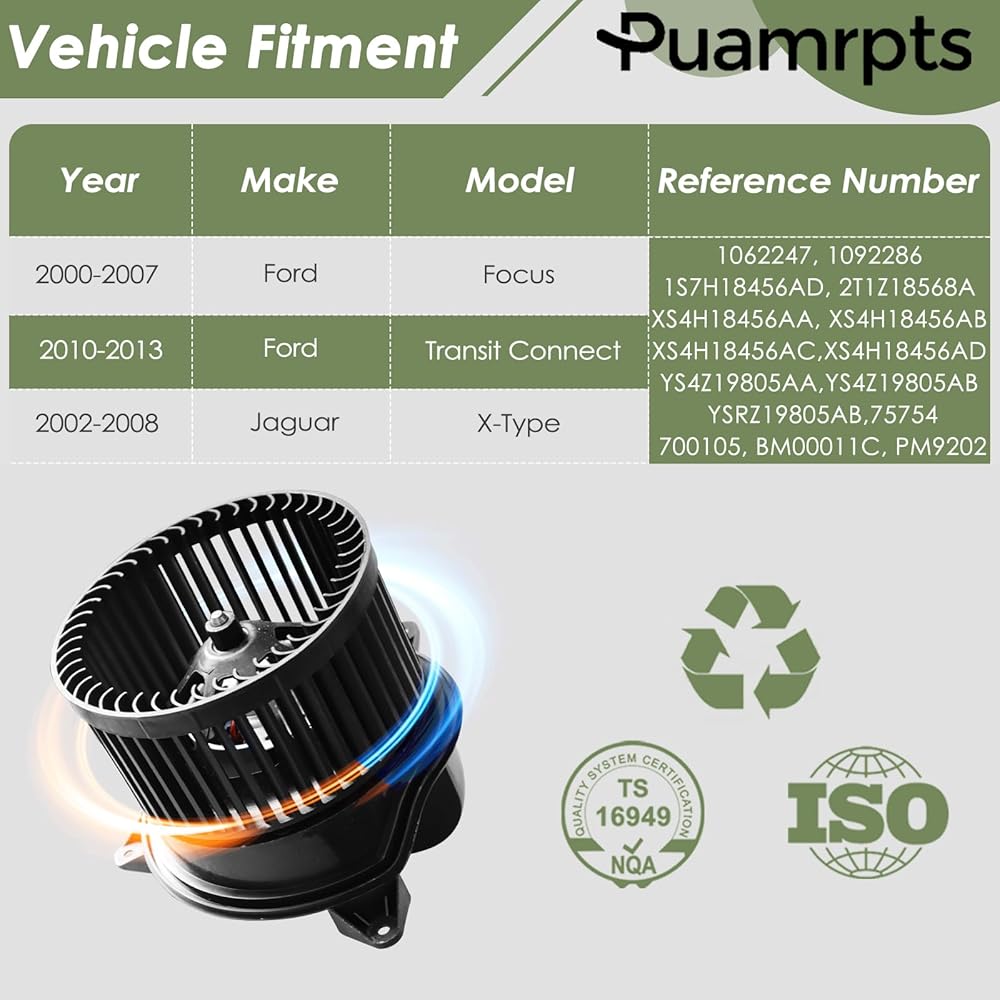 مجموعة محرك منفاخ سخان التيار المتردد - متوافقة مع سيارات Ford & Jaguar - Focus 2000-2007، Transit Connect 2010-2013، X-Type 2002-2008 - استبدال # 700105