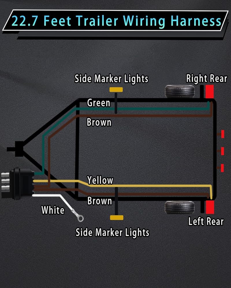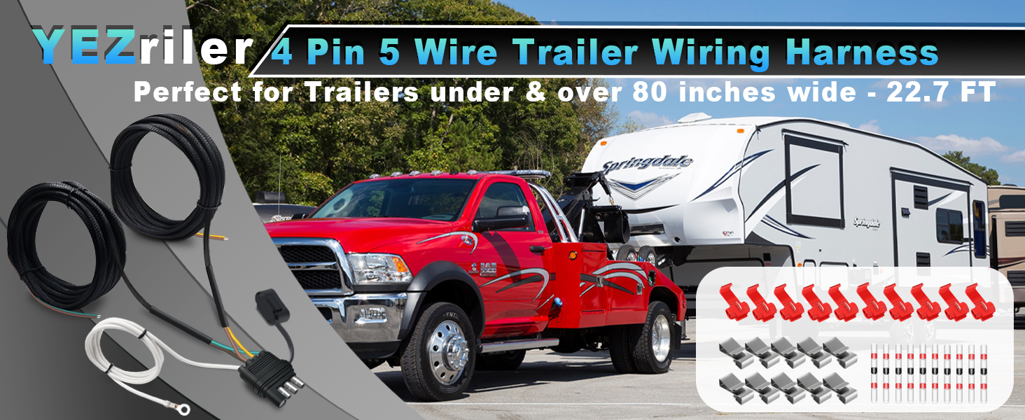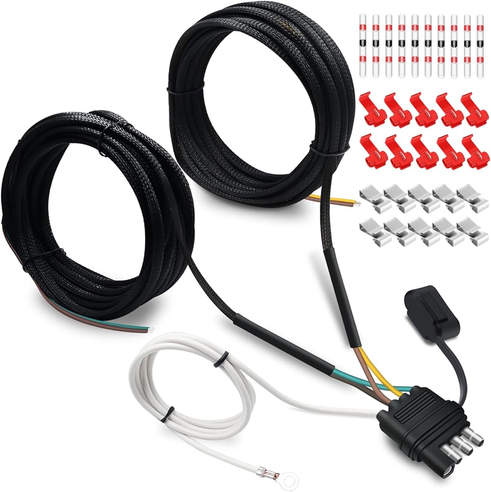 تسخير أسلاك المقطورة، 22.7FT 4 دبوس 5 سلك مجموعة إضاءة مقطورة Wishbond مع مقاطع الأسلاك، 4 طرق مسطحة 5 أسلاك موصل مقطورة سلك التوصيل لإعادة توصيل الأسلاك الخلفية للمقطورة على كلا الجانبين