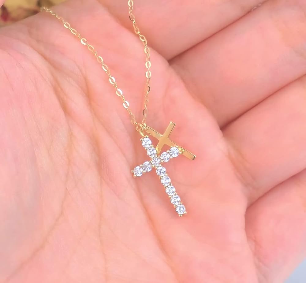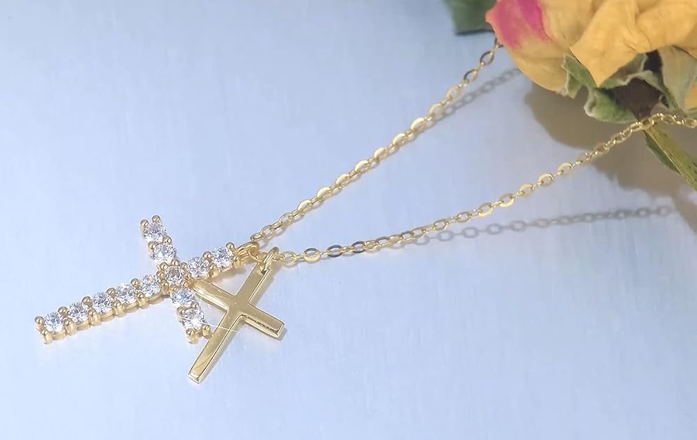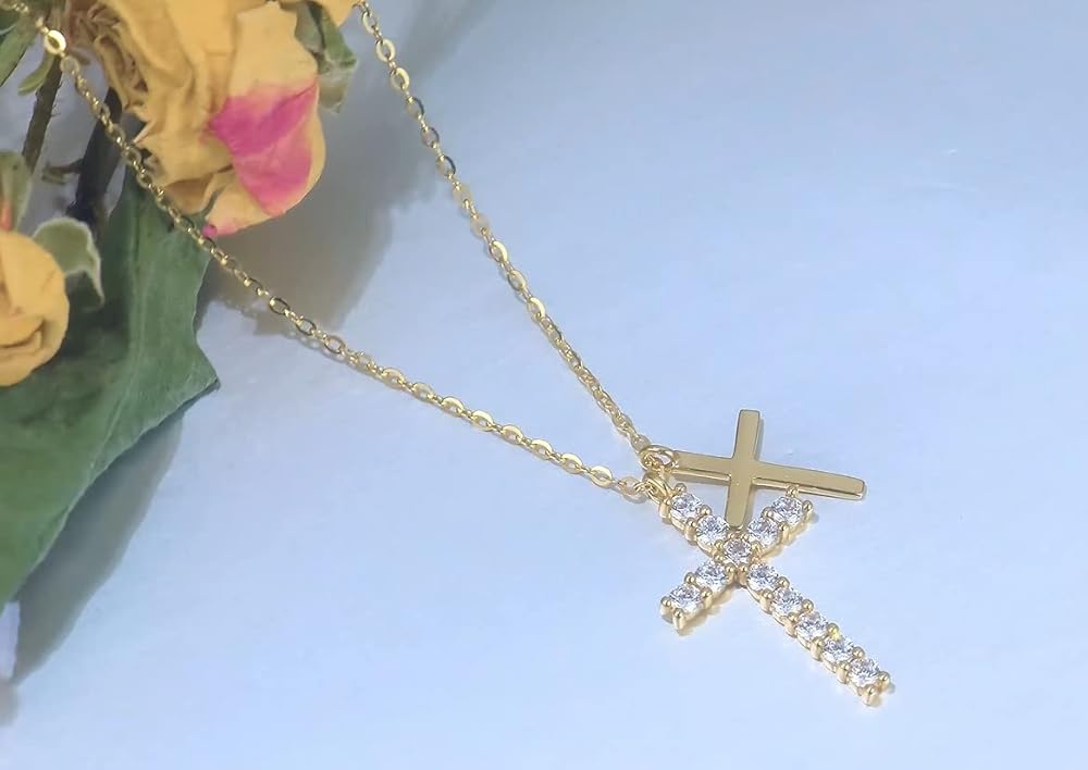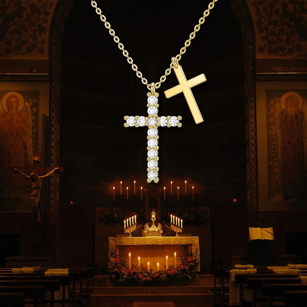 【التصميم】 تمثل الصلبان الكبيرة والصغيرة إيمانك وولاءك المشترك معها. (يمكن نقل الصليب الصغير إلى الخلف لارتداء نمط قلادة واحدة من صليب الزركون.)