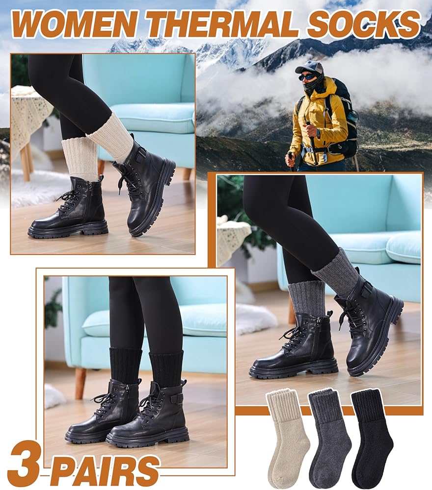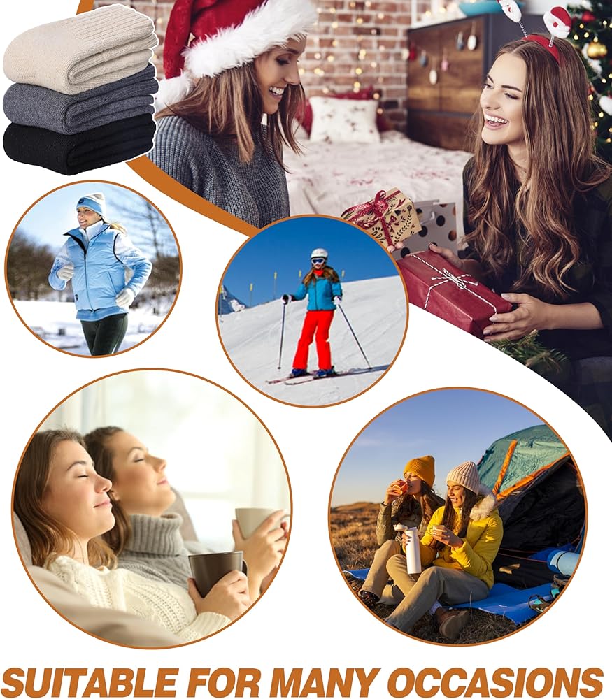 • متعددة الوظائف - الجوارب النسائية الحرارية من الصوف مناسبة لمواقف مختلفة، يمكنك ارتداؤها في المكتب، المدرسة، التنزه سيرًا على الأقدام، في الهواء الطلق، الرياضة، في الداخل، المنزل، العمل، جوارب طويلة الرقبة، جوارب شديدة التحمل، جوارب رسمية، جوارب عيد الميلاد للنساء في الربيع والخريف وفصل الشتاء أو في أي طقس بارد أو مناطق ثلجية.