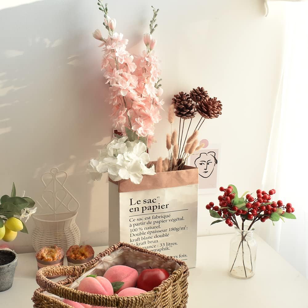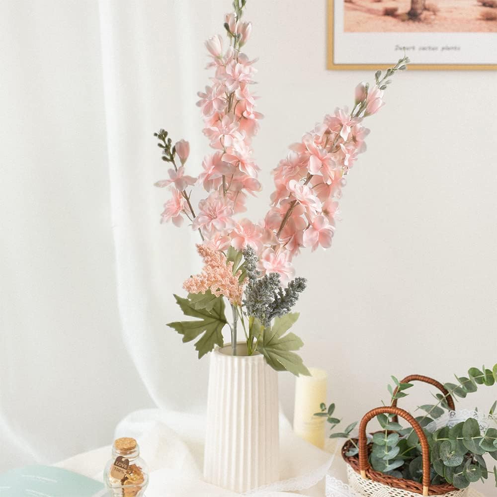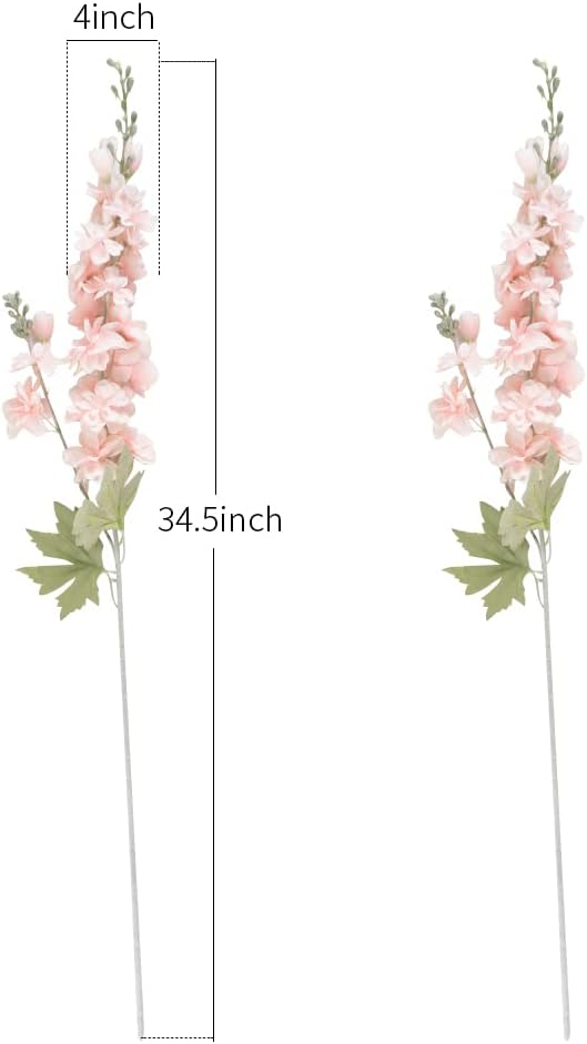 قطعتان من زهور الدلفينيوم الاصطناعية زهور حرير بنفسجية وهمية مع تشكيلة نباتات جذعية للمنزل والحديقة وحفلات الزفاف وتزيين الطاولة (وردي)
