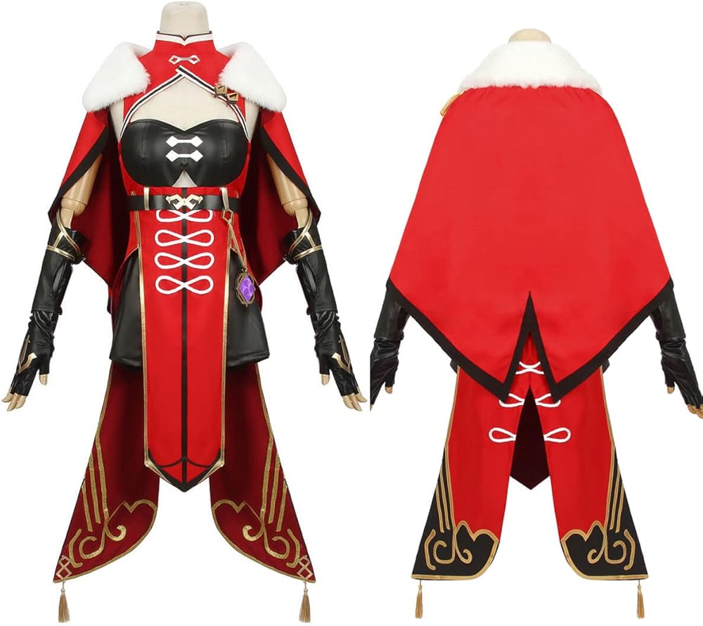 💥ميزات أزياء Beidou التأثيرية: يحتوي الجزء العلوي من beidou على سحاب خلفي مع حزام أسود من الجلد الصناعي مغلق عبر الفيلكرو. يتميز رداء Beidou بياقة واسعة من الفراء الصناعي قصير الوبر. مادة الجورب والقفازات والقصيرة وجزء الصدر مصنوع من الجلد الصناعي القابل للتمدد. والشورت ذو حزام خصر مطاطي. لذلك فهو يناسب النساء ذوات الحجم الزائد.