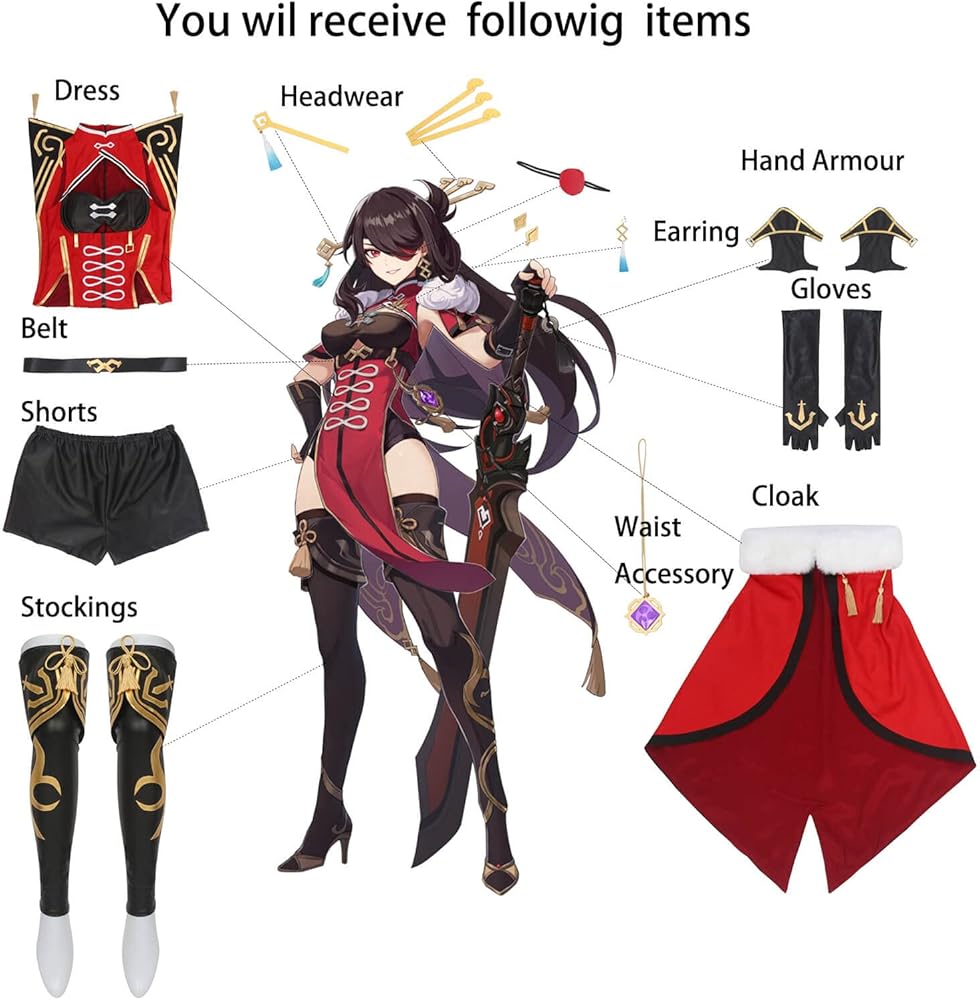 💥تتضمن مجموعة ملابس Beidou الكاملة - 1* فستان، 1*غطاء رأس، زوج من الأكمام، قفازات، جوارب، أقراط بمشبك، 1* حزام، 1*شورت، 1*قناع عين، 4* دبوس شعر، إكسسوارات. كما يأتي مع شريط مزدوج الجوانب. نظرًا لأن جميع الملحقات مصنوعة يدويًا، فقد تنخلع أثناء النقل. الشريط مخصص لمزيد من الدعم. يرجى الاتصال بنا إذا كان لديك أي مشكلة.