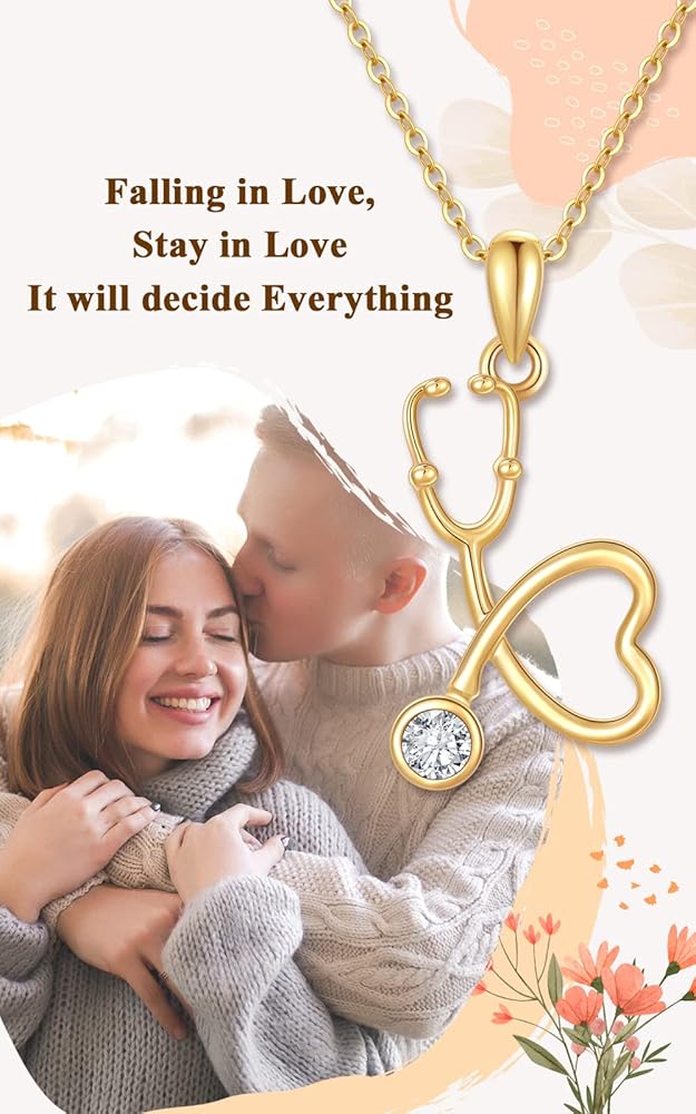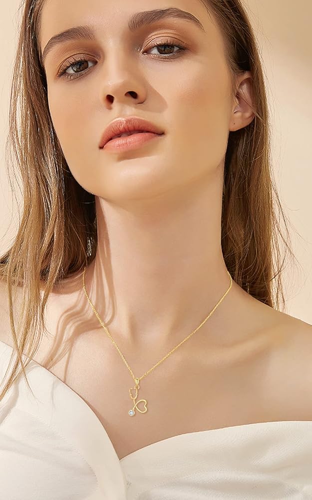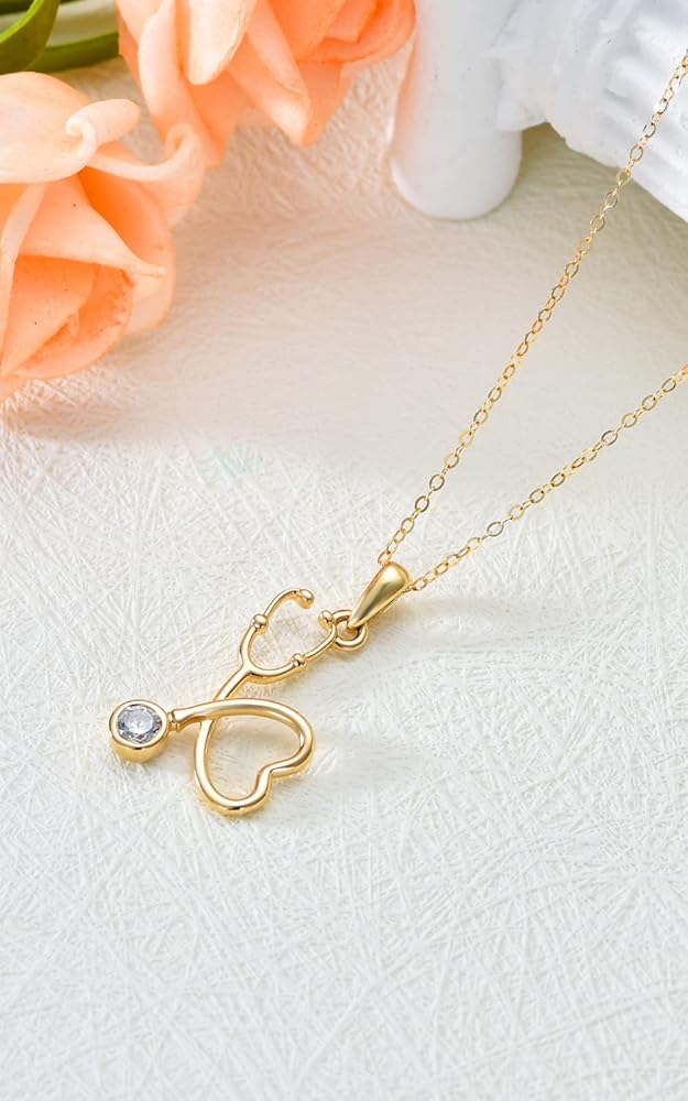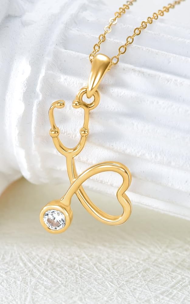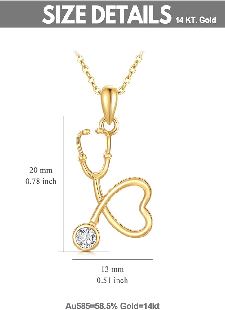 1 x 14k gold stethoscope pendant necklace for doctor nurse