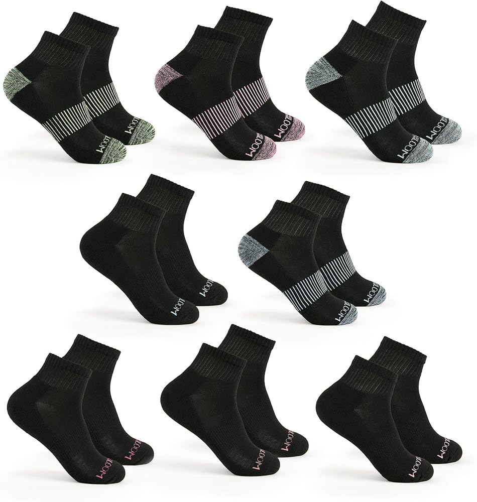 Multi Pack: Get 8 pairs of basic socks in either black or grey in one convenient package, with sizes ranging from women's shoe size 4 to 10