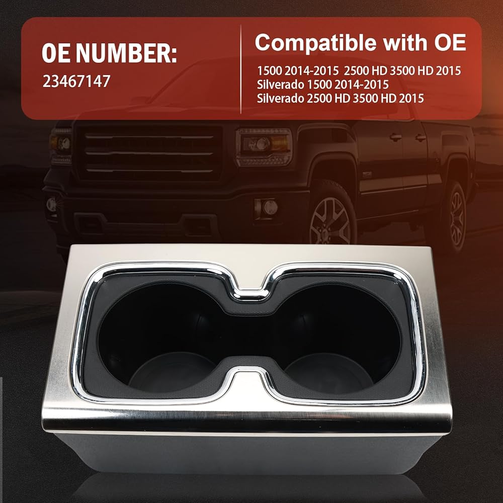 حامل أكواب وحدة التحكم المركزية 23467147 متوافق مع سييرا 1500 2014-2015 سييرا 2500 HD 3500 HD 2015 سيلفرادو 1500 2014-2015 سيلفرادو 2500 HD 3500 HD 2015