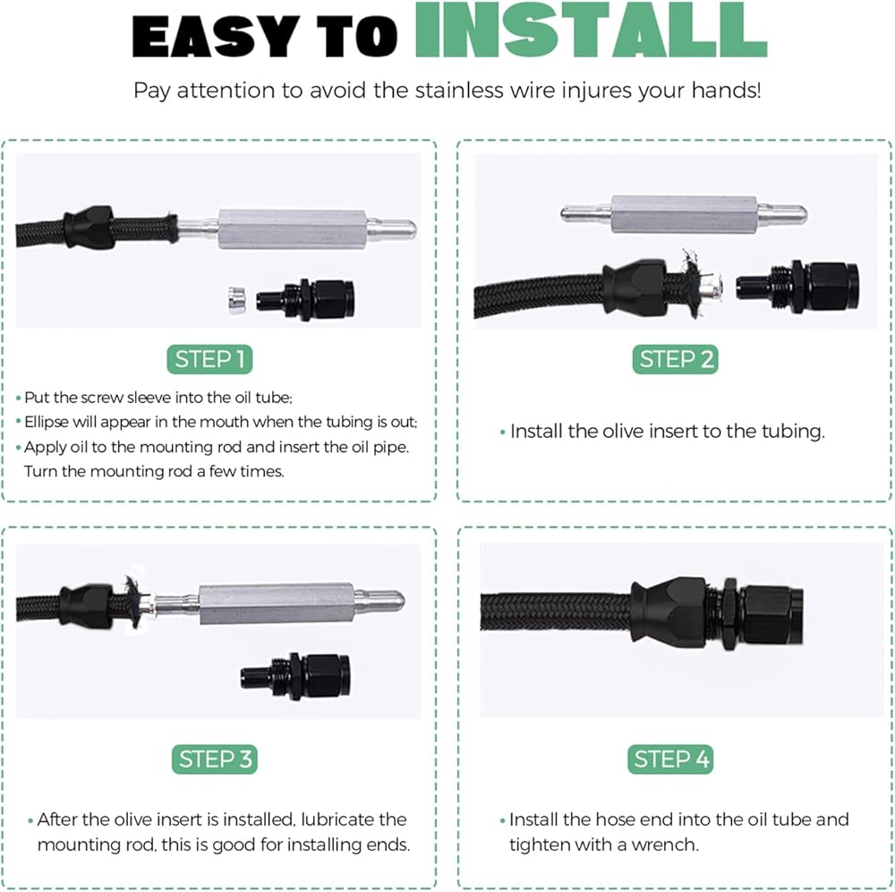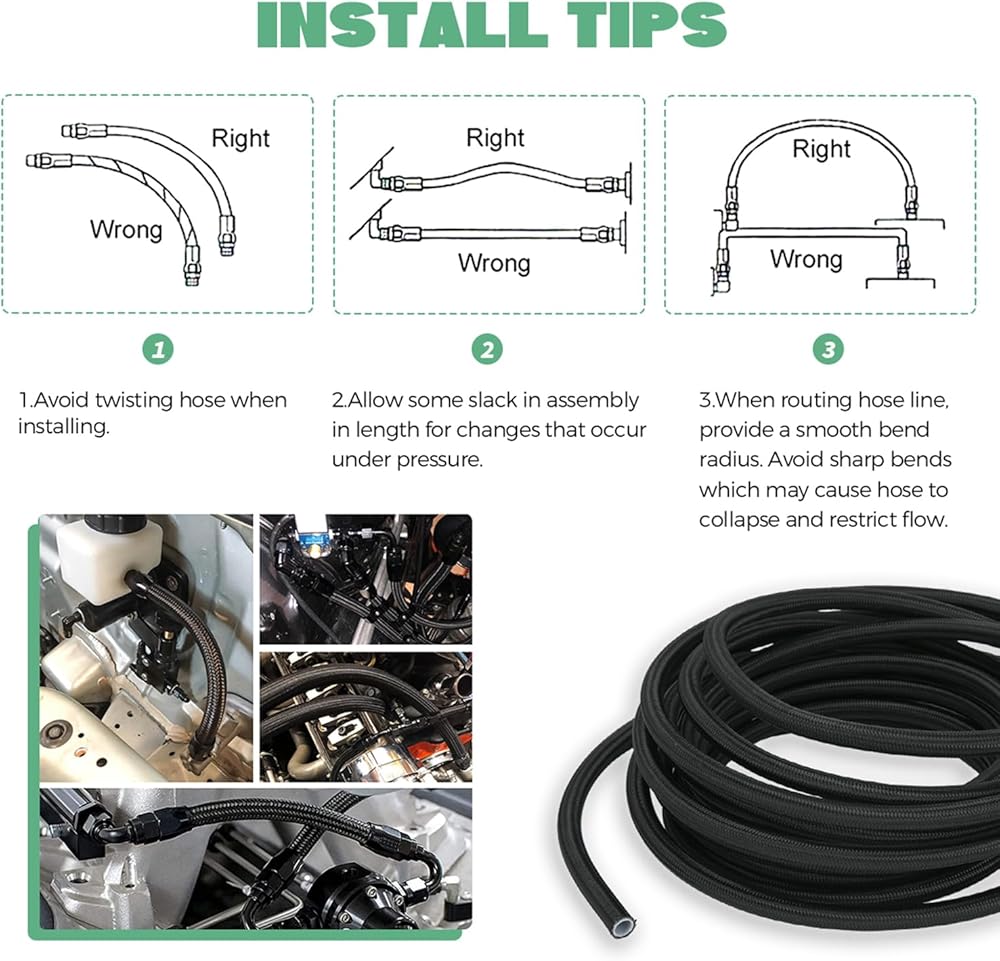 الأداء: يتم استخدام مجموعة خطوط الوقود المضفرة المصنوعة من الفولاذ المقاوم للصدأ PTFE في الغالب في نظام EFI LS ويمكن استخدامها كخرطوم حقن الوقود، ومبادلة المحرك ls وخط وقود تحويل EFI، وخط تغذية وتعزيز زيت التوربو، وخط تبريد زيت ناقل الحركة، وخط وقود الكربوهيدرات، خط إرجاع الوقود، خط إرجاع البخار، خط الفراغ، خط إمداد الوقود، خط وقود الشاحن التوربيني وغيرها من تطبيقات الضغط العالي ذات درجة الحرارة العالية.