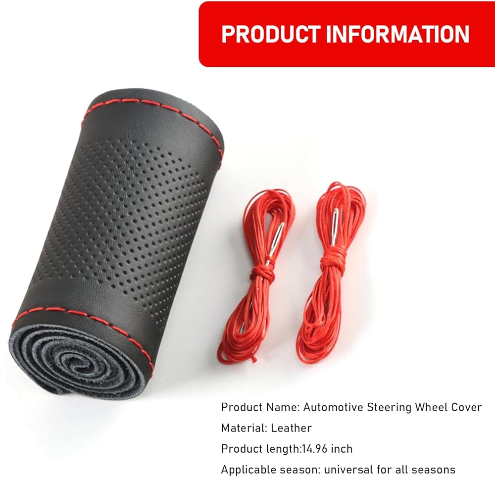 • DIY Installation: The steering wheel you buy is a full piece of cowhide with two bundles of sewing thread. You need to sew the leather steering wheel to your own car steering wheel and enjoy the fun of DIY creation.