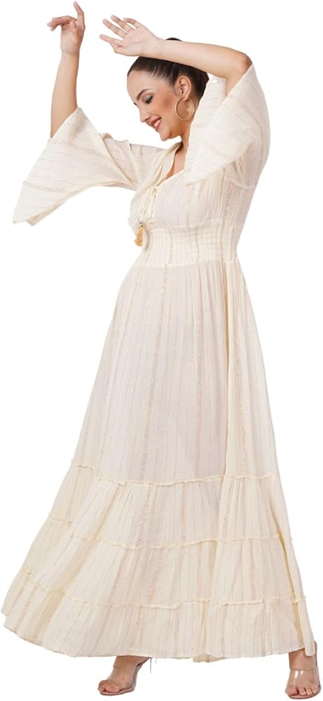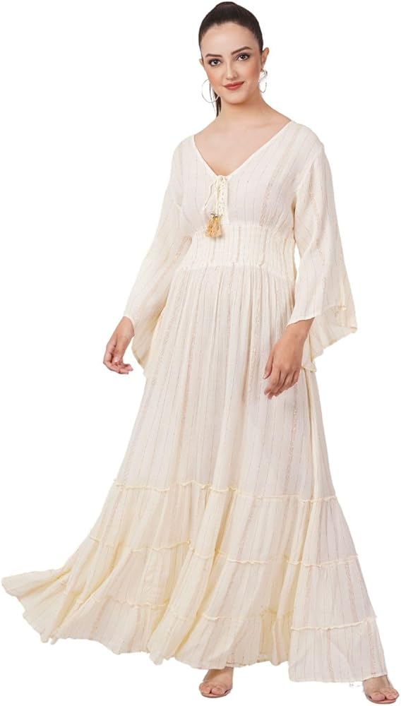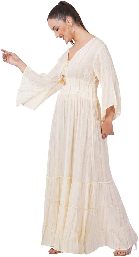 Rayon Lurex Full Length Dress, a perfect fusion of sophistication and comfort.