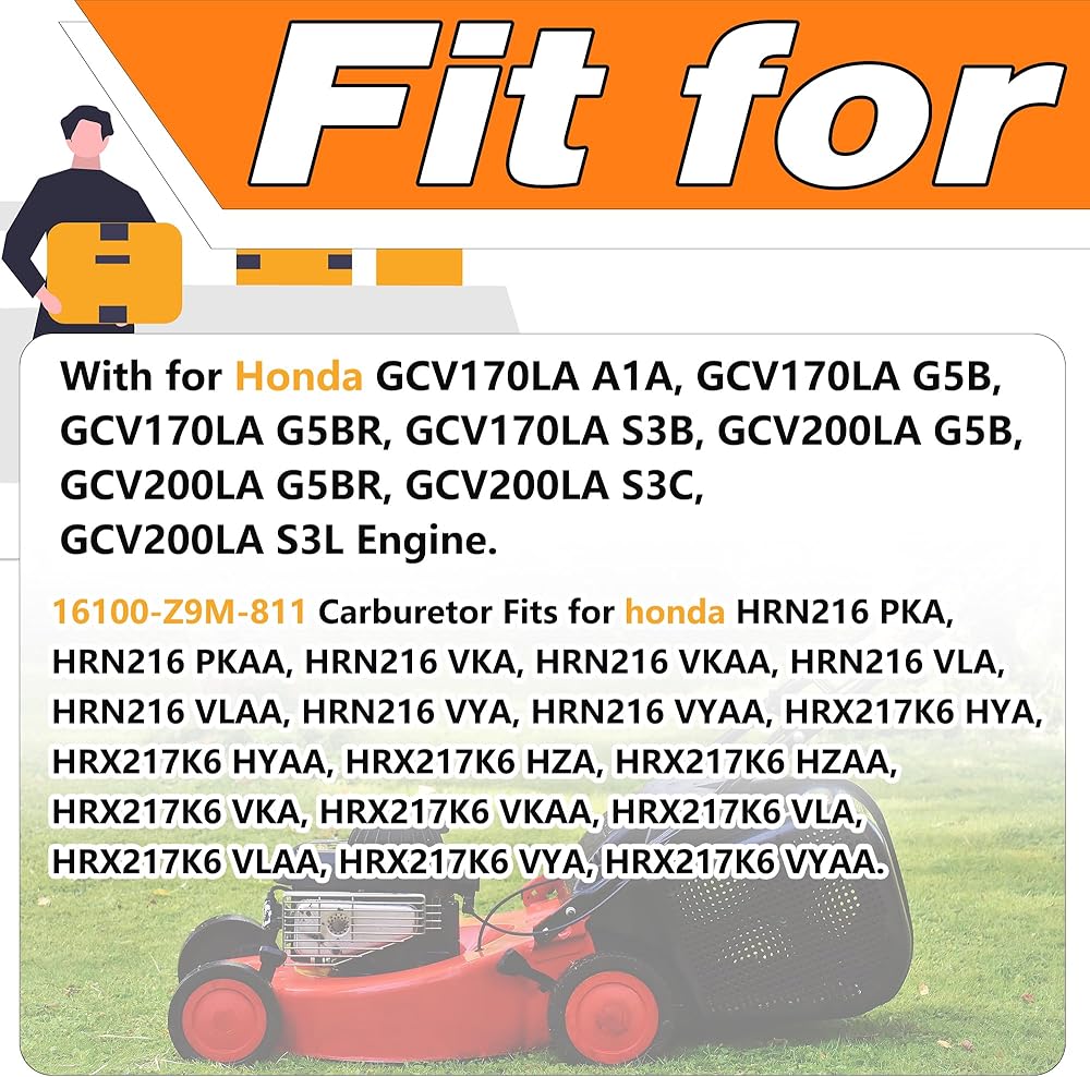 المكربن متوافق مع محرك موديلات Honda GCV170LA HRN216 HRX217. يستبدل #16100-Z9M-811، 16100Z9L811، 16100 Z9L 811. (الكربوهيدرات مع مجموعة ضبط)
