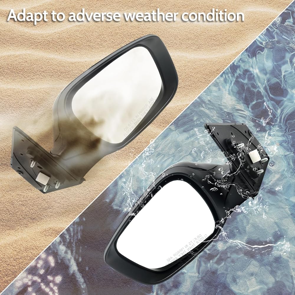 [Specifications] ① Position: Front Left Driver Side; ② Color: Black; ③ Glass Type: Flat; ④ Mirror Adjustment Method: Powered; ⑤ Foldaway: Yes; ⑥ Folding Type: Manual; ⑦ Turn Signal Indicator: No; ⑧ Blind Spot Detection: No; ⑨ Heated: Yes