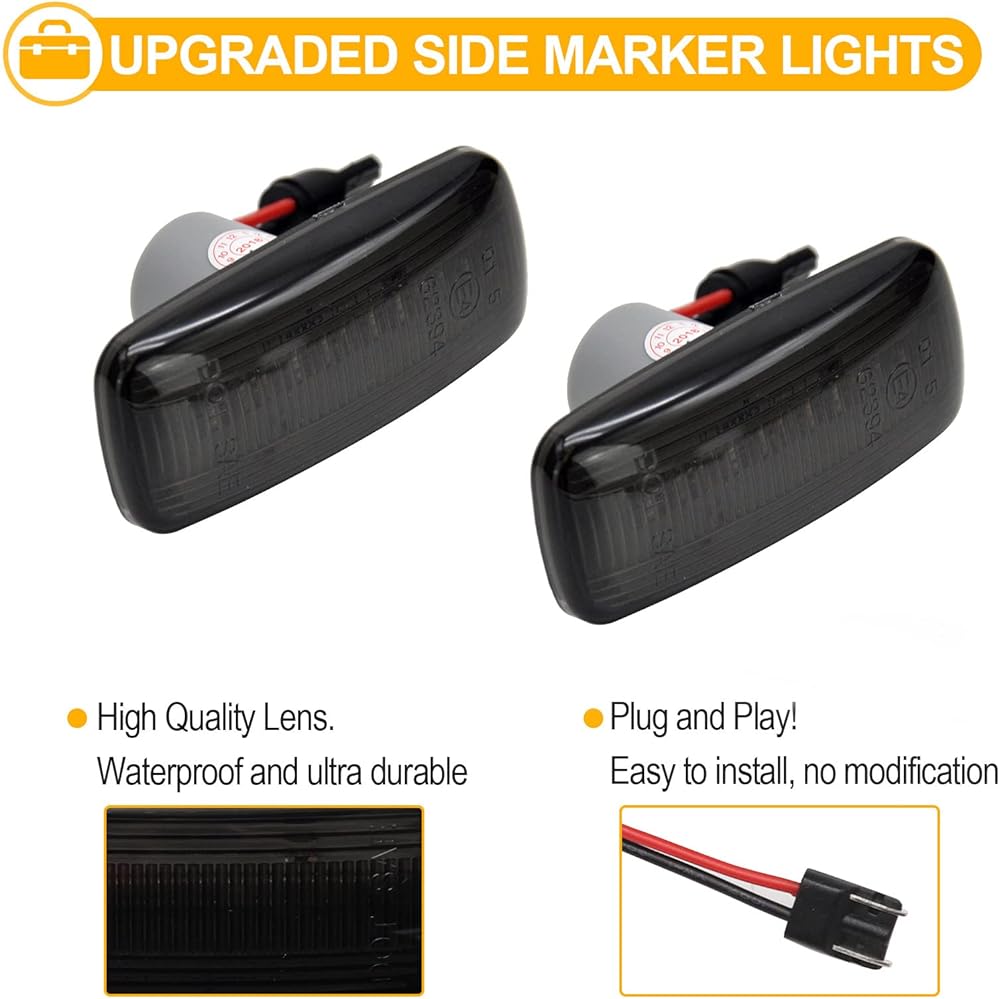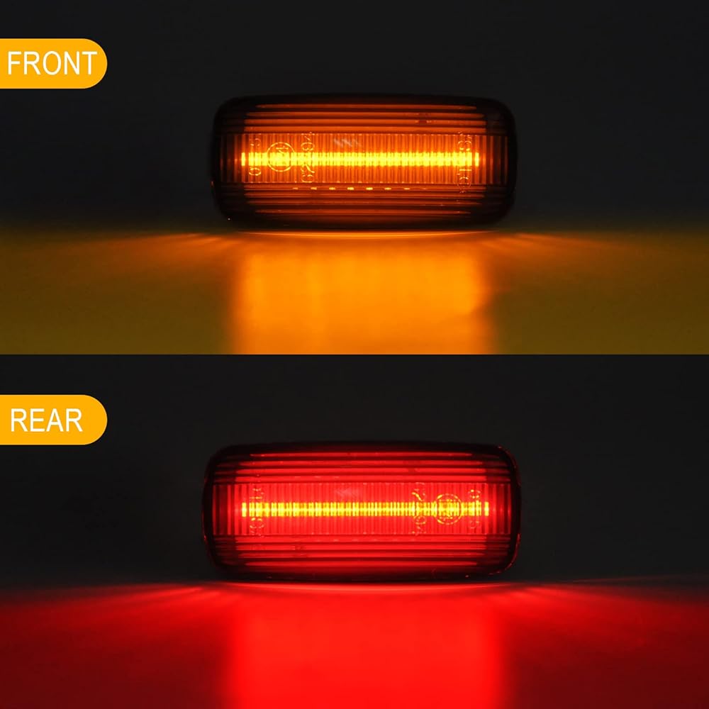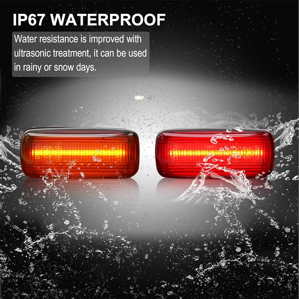 • 【جودة عالية】: معتمدة من DOT، ومعتمدة من SAE. مصباح التحديد الجانبي LED مصنوع من بلاستيك البولي كربونات المضاد للخدش. رقائق LED عالية الطاقة مع خرج إضاءة فائق السطوع