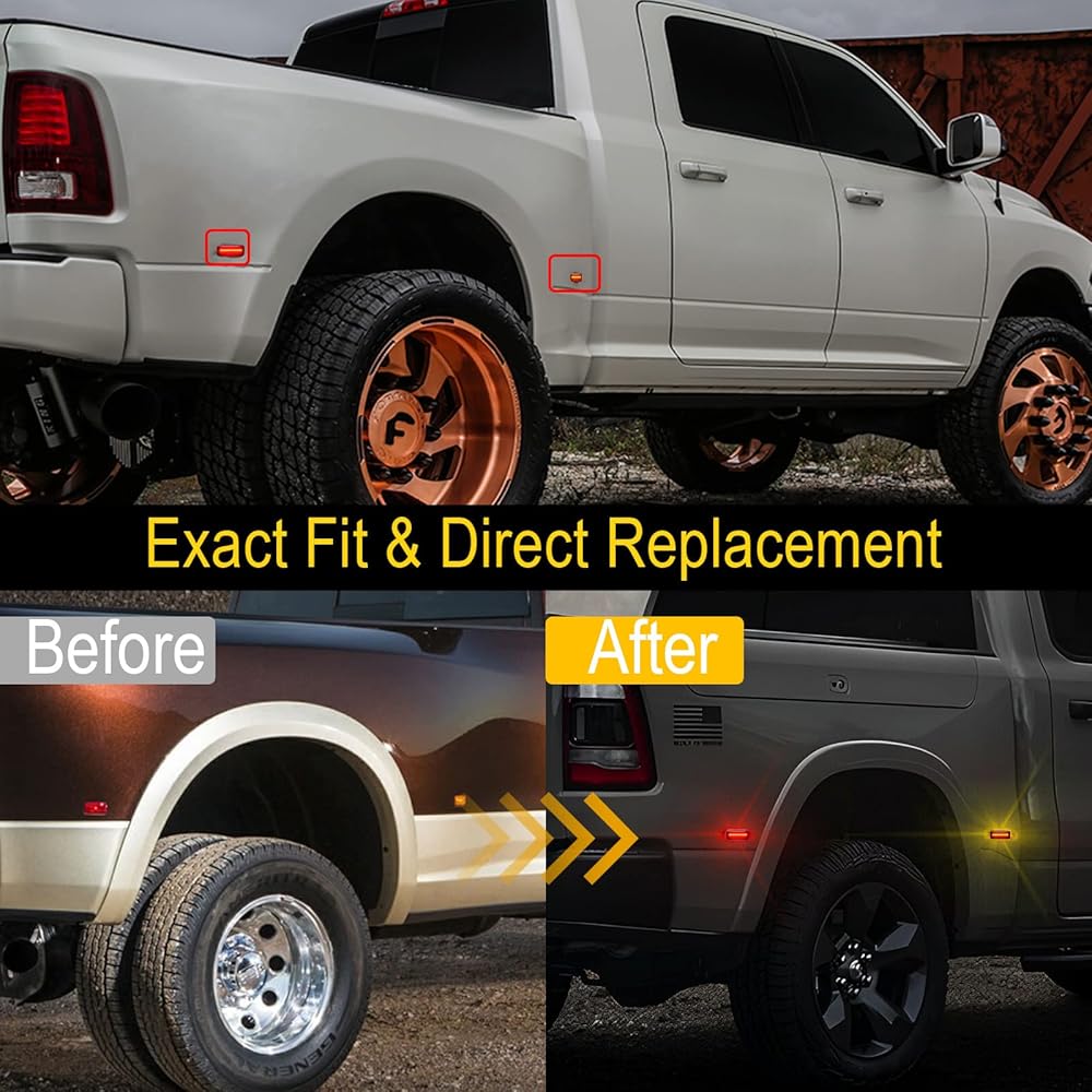 R&F Auto 4 قطع عدسات مدخنة LED للحاجز الجانبي لاستبدال ضوء Ram 2500HD 3500HD 2010-2018 شاحنات بيك اب ذات عجلة مزدوجة كهرمان خلفي/أضواء سرير حمراء للسائق وجانب الركاب
