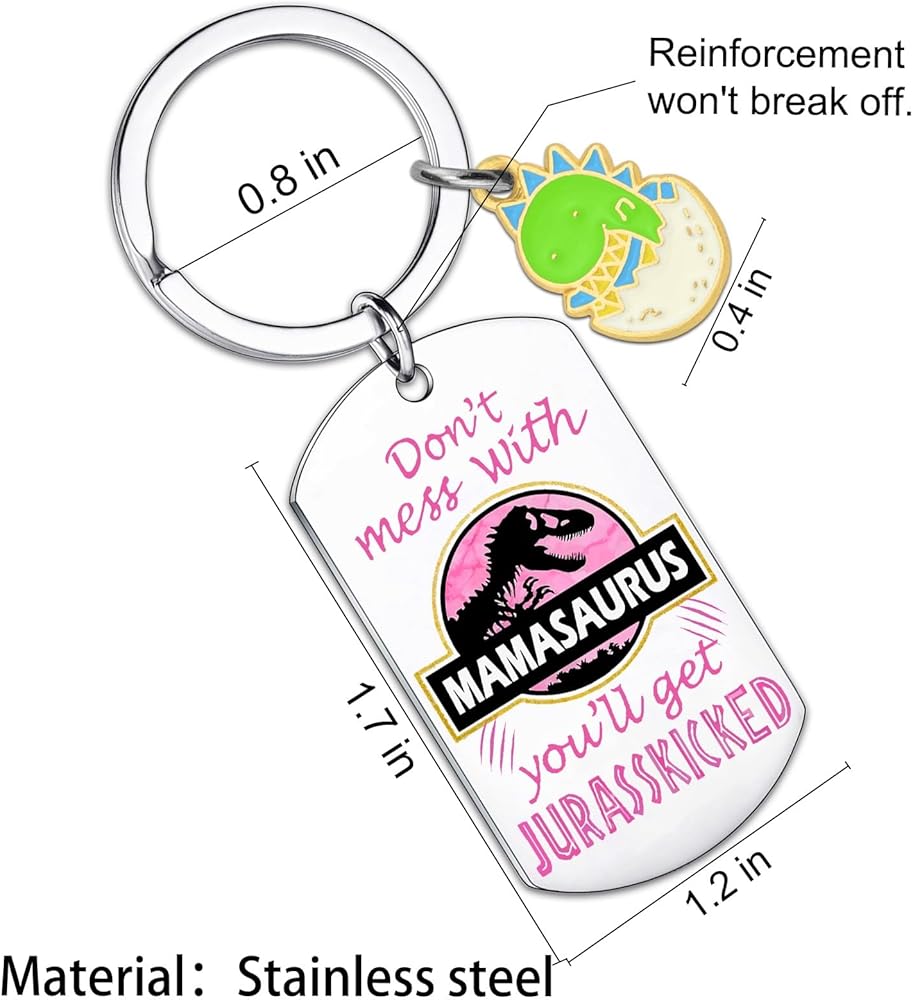 our mamaasaurus keychain gift is the perfect way to celebrate Mother's Day and honor the incredible moms in our lives. With its playful message, charming design, and practical functionality, it's sure to be a gift that your mom will treasure for years to come. So don't wait any longer – show your mom just how much she means to you with our fierce and fabulous keychain gift!