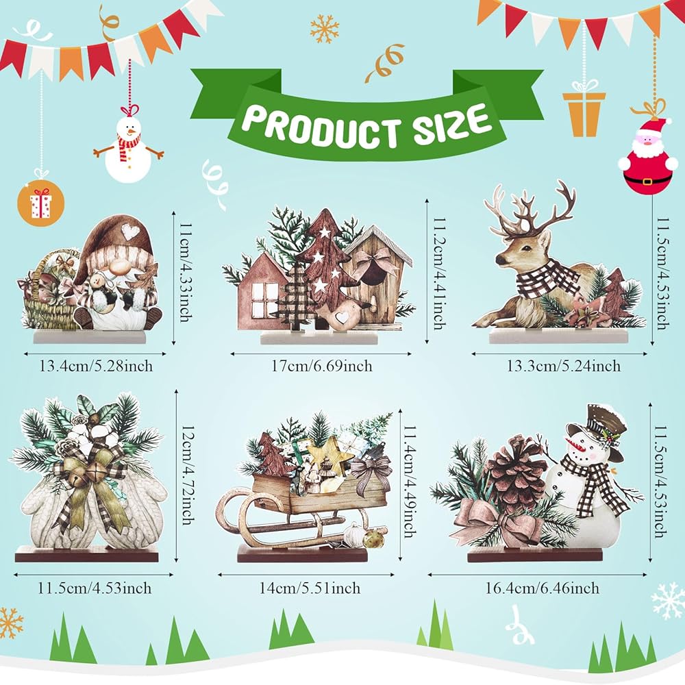 Winter Wooden Table Signs: The package include 6 pieces wooden winter table centerpieces in 6 different design. Each Christmas party decorations have comes with base which can easily put them on table, counter, fireplace, desk and so on