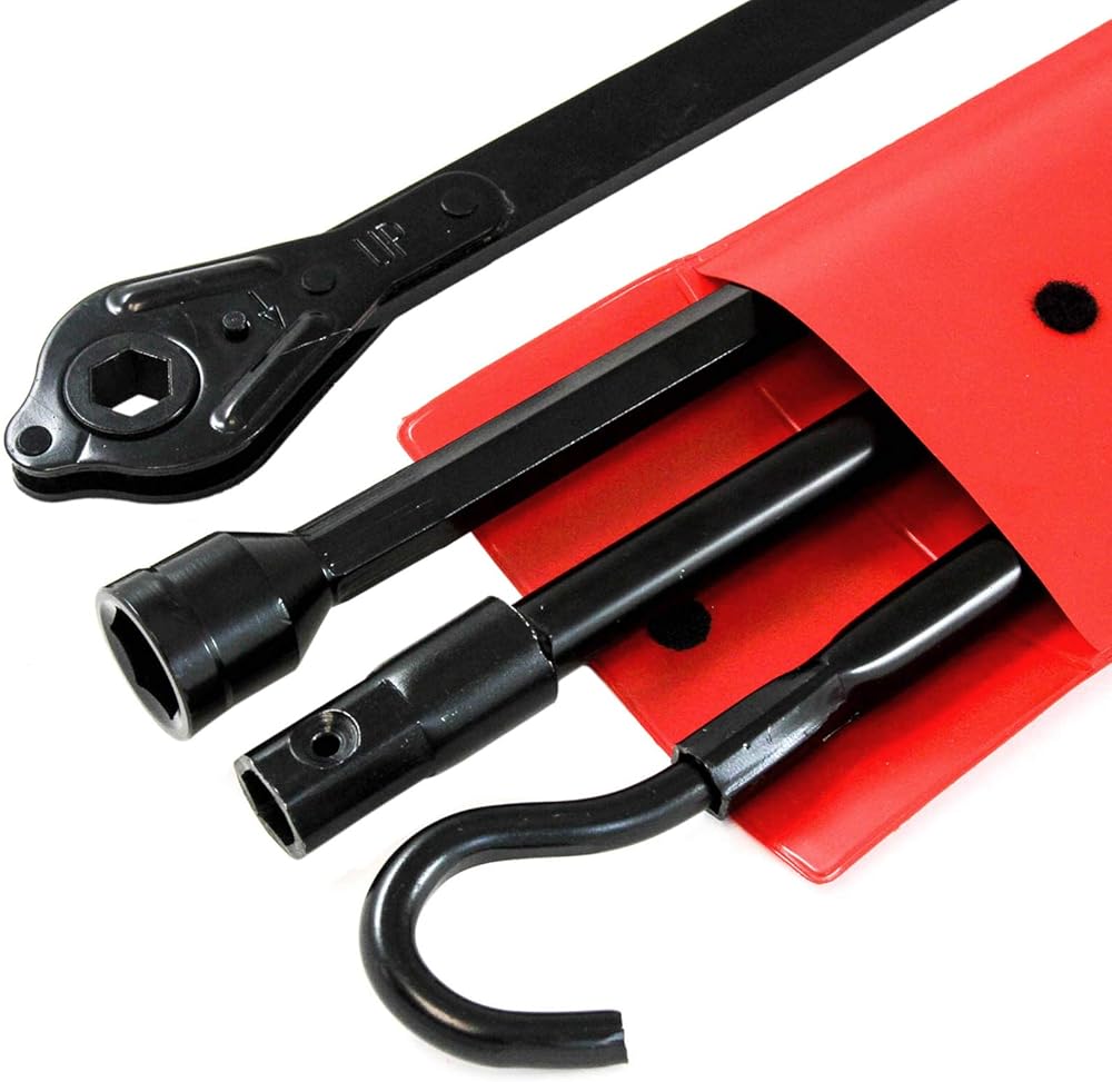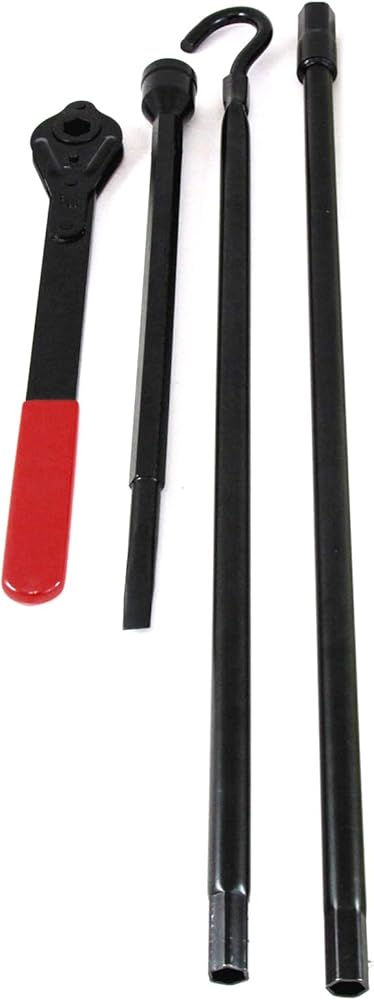 - 4-Piece Tire Tool Kit with Case (1 Lug Wrench Tool, 1 Ratchet Tool, 1 Hook Segment, 1 Extension Segment)