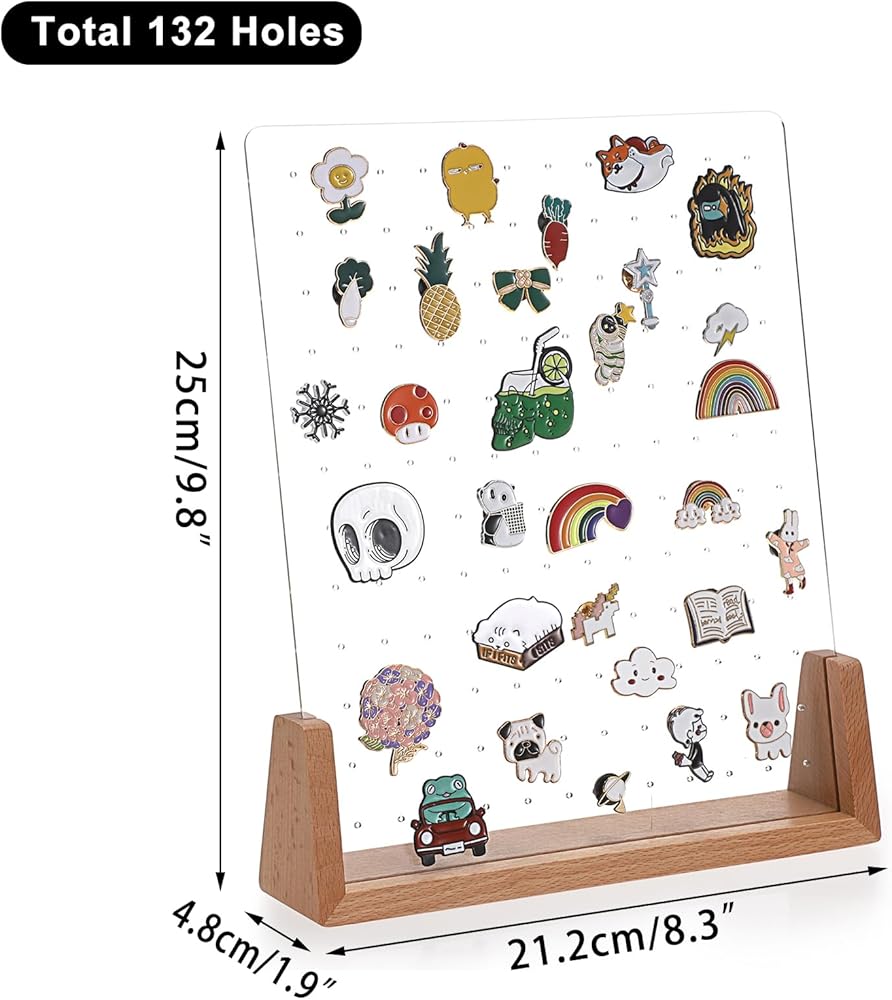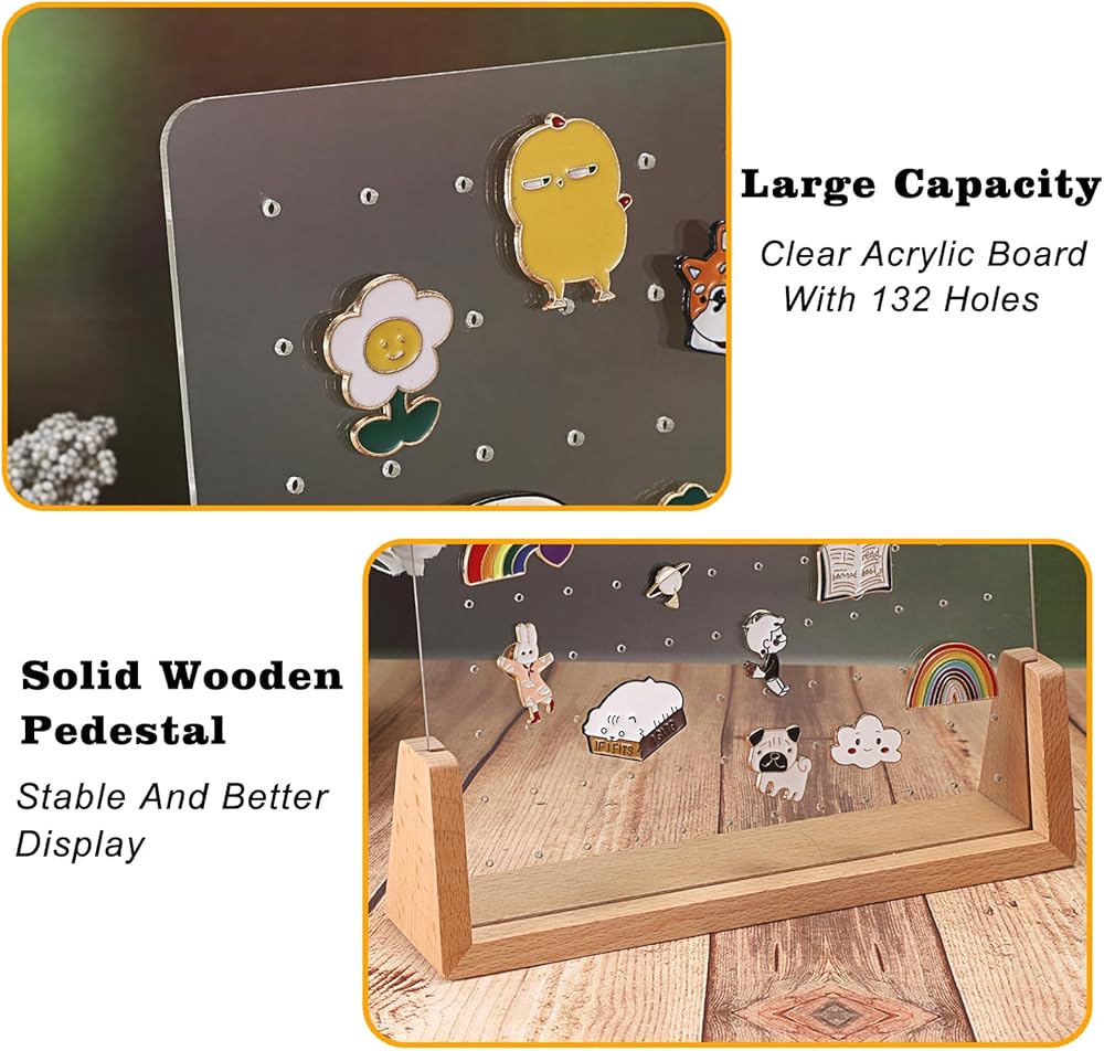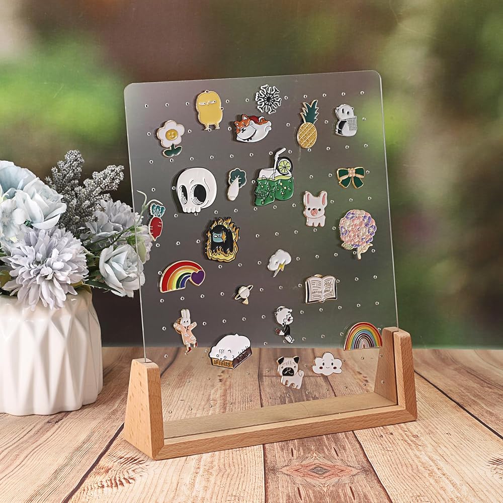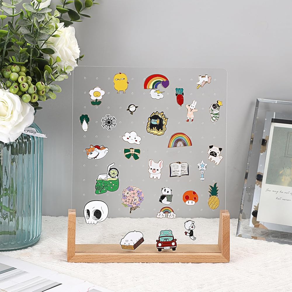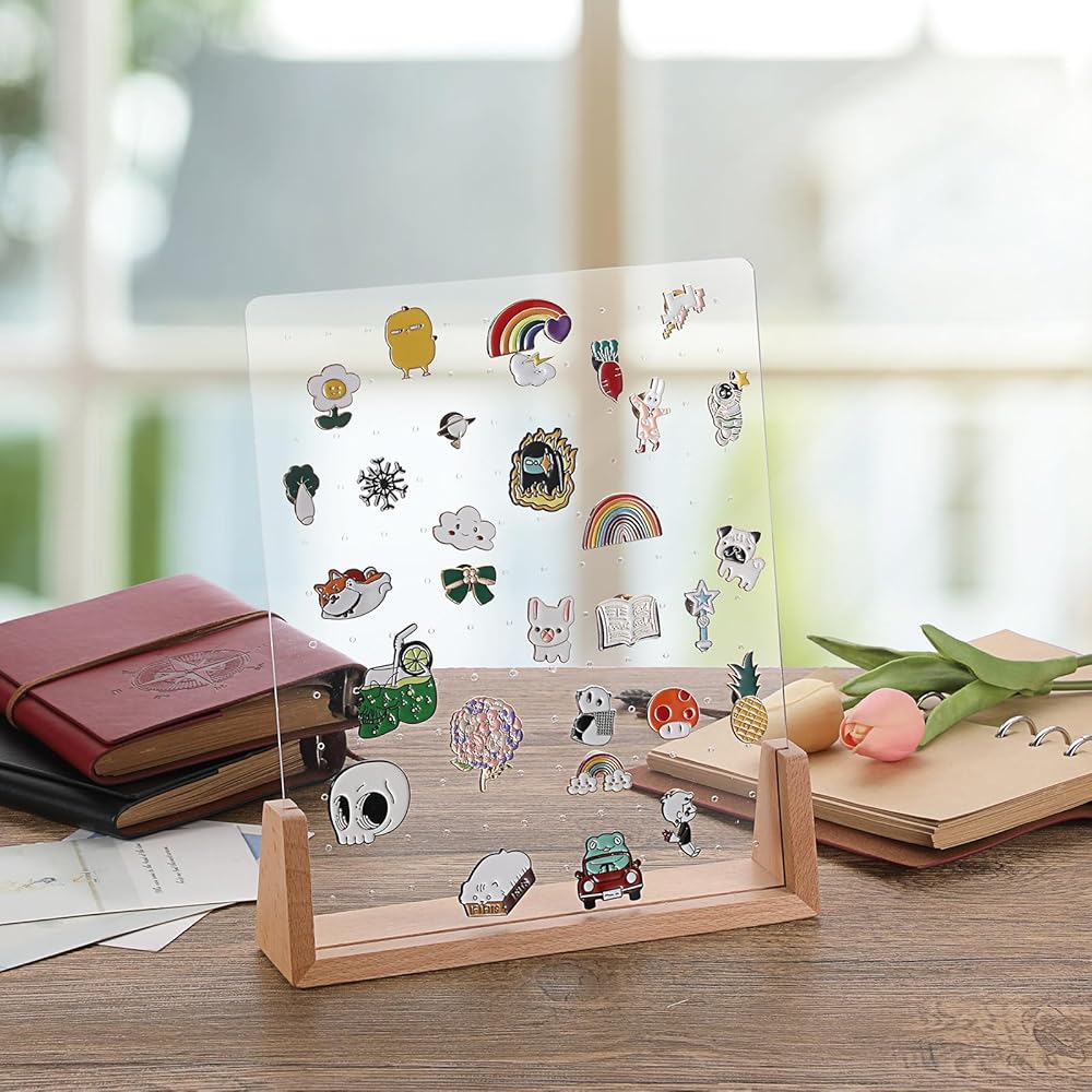 حامل تخزين دبابيس الشارة مصنوع من الأكريليك والقاعدة مصنوعة من الخشب، متين وقوي دون أن ينكسر بسهولة، مما يقدم لنا تجارب استخدام لطيفة؛ إنها سهلة التجميع ويمكنها عرض مجموعات دبابيس الشارة الخاصة بنا بشكل جيد