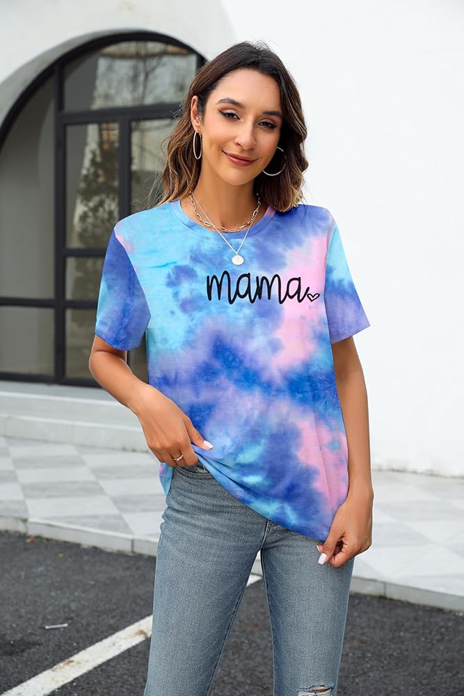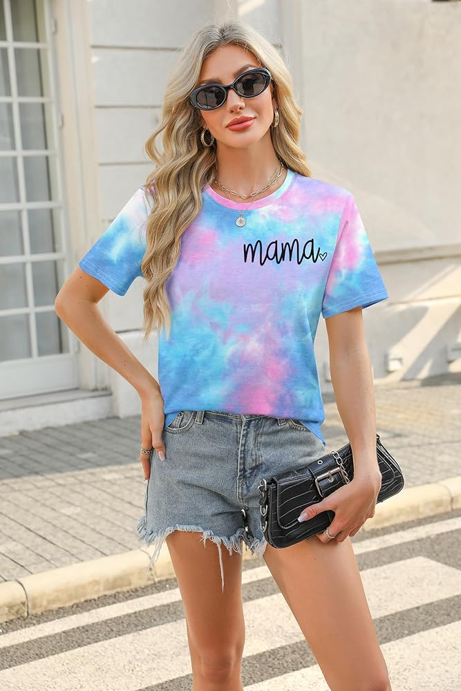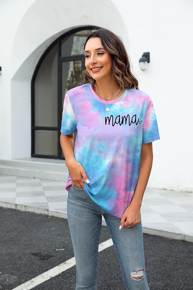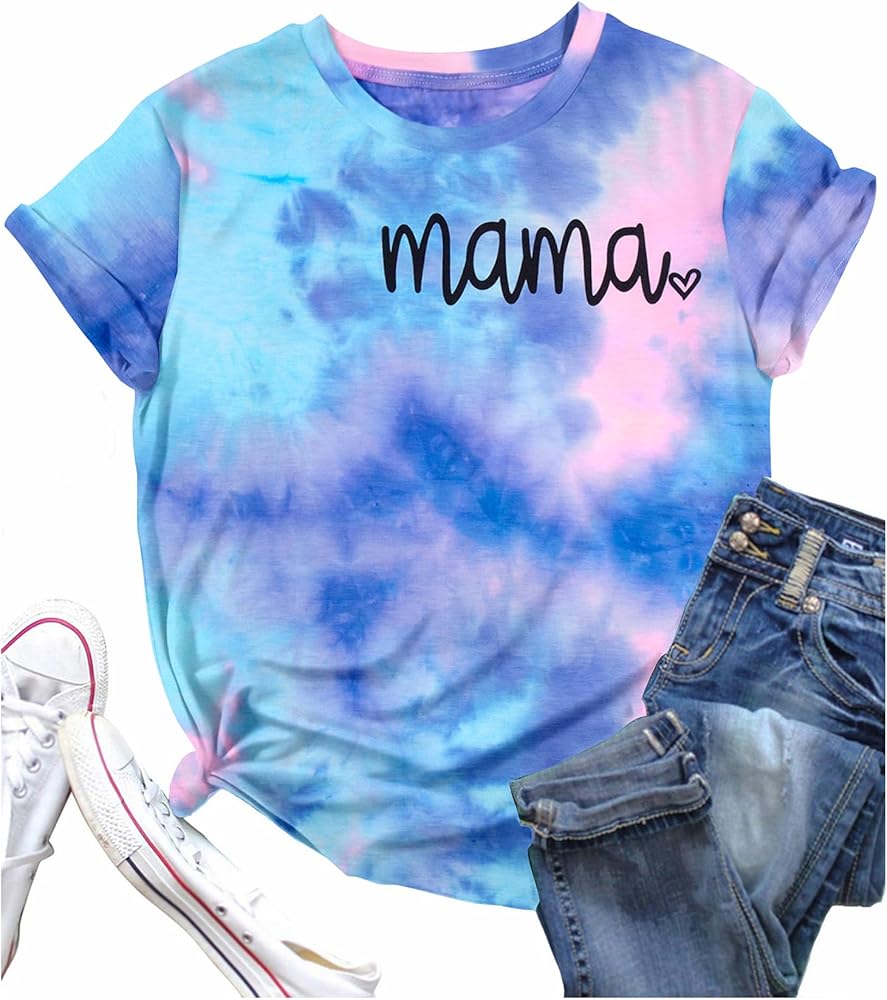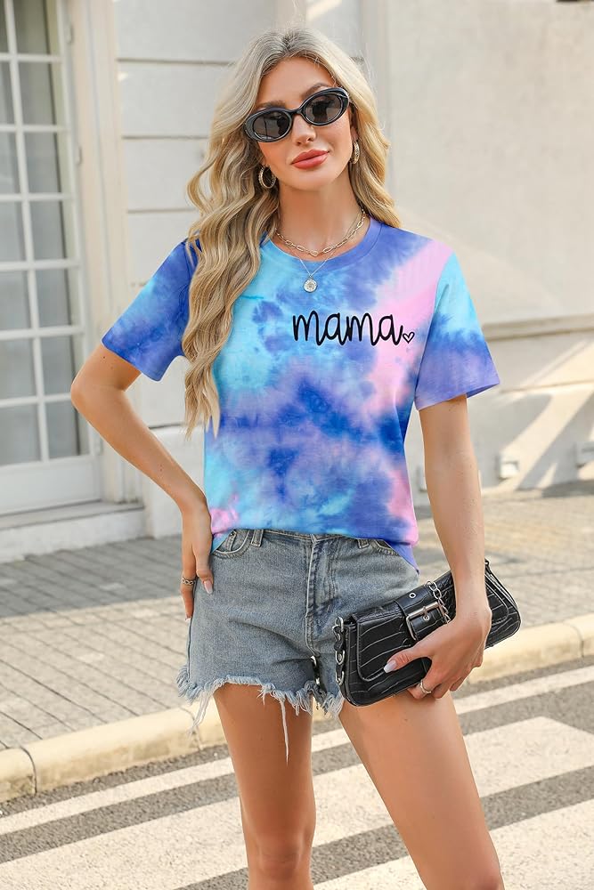 المزايا: قميص برسومات Mama، قميص مصبوغ بربطة عنق، تي شيرت كاجوال بأكمام قصيرة ورقبة مستديرة. تصميم عصري كاجوال، مقاس مريح.