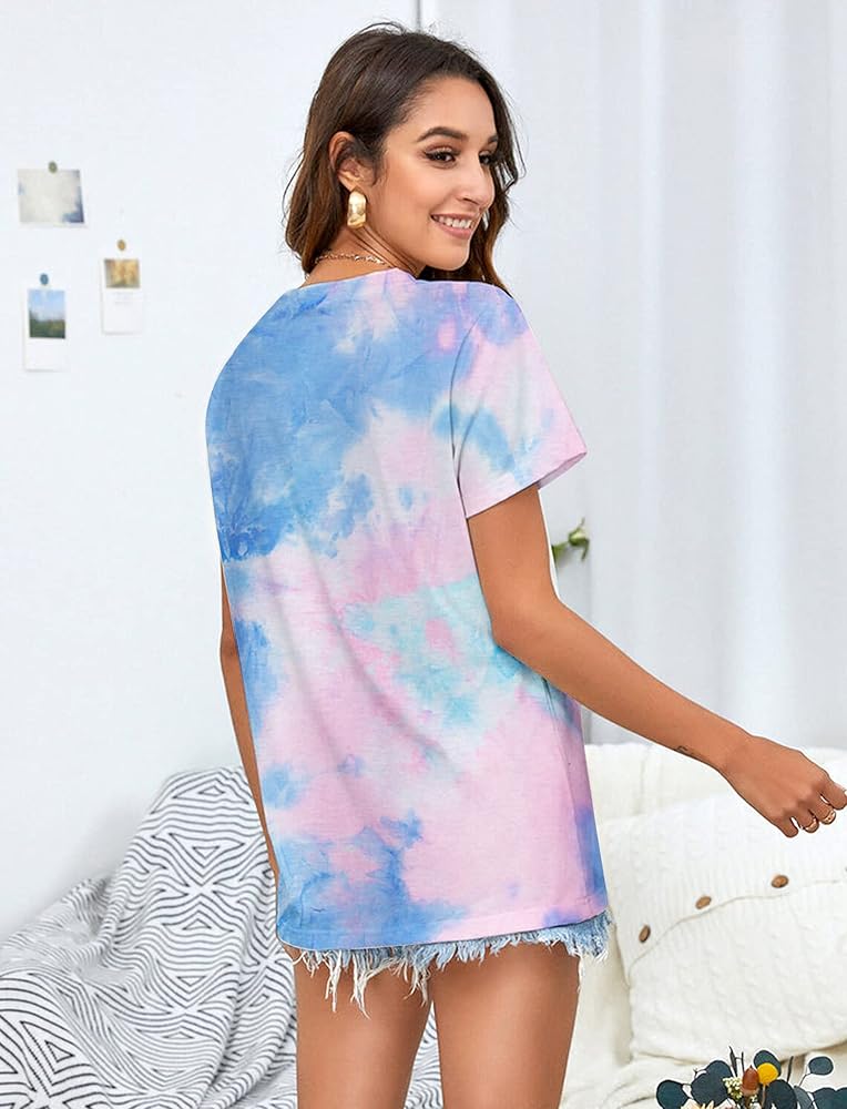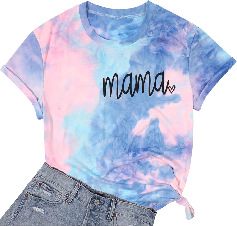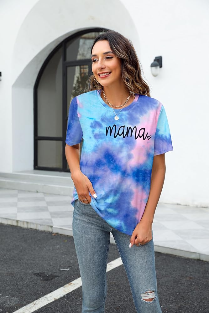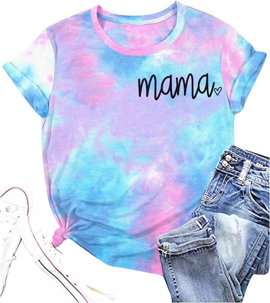 المزايا: قميص برسومات Mama، قميص مصبوغ بربطة عنق، تي شيرت كاجوال بأكمام قصيرة ورقبة مستديرة. تصميم عصري كاجوال، مقاس مريح.