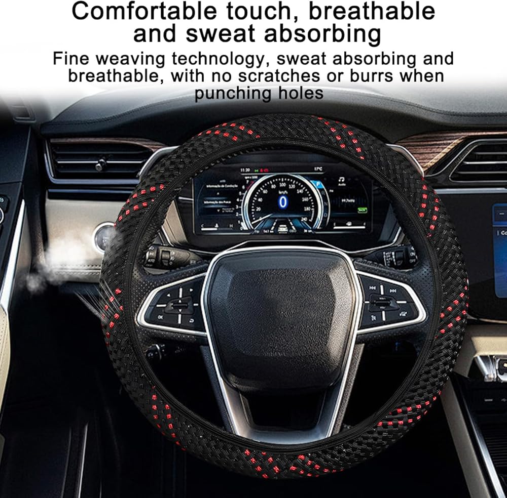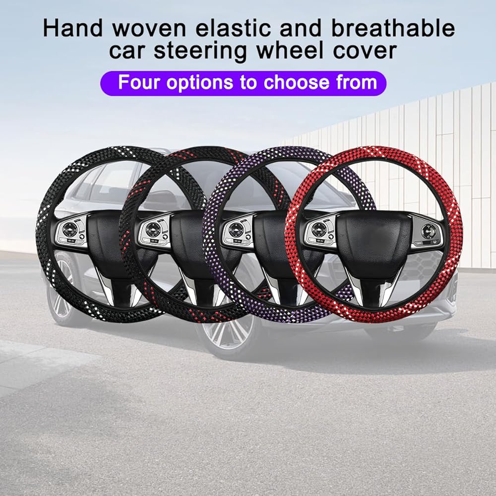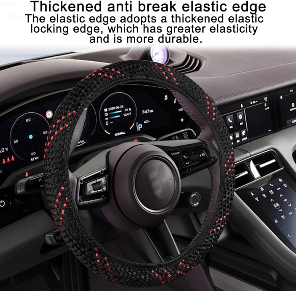 【Beautiful Appearance】: This ice silk steering wheel protector has a stylish and beautiful appearance, which can add a sense of sophistication to the interior of the car. It also has a delicate woven hollow design, which not only has a decorative effect, but also can massage the hands and relieve the fatigue of driving.